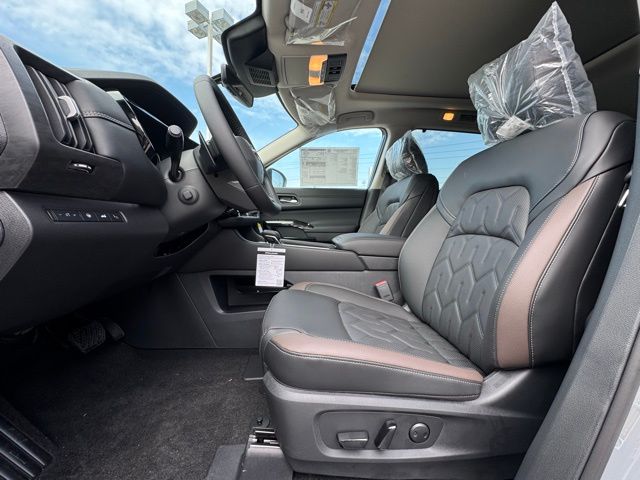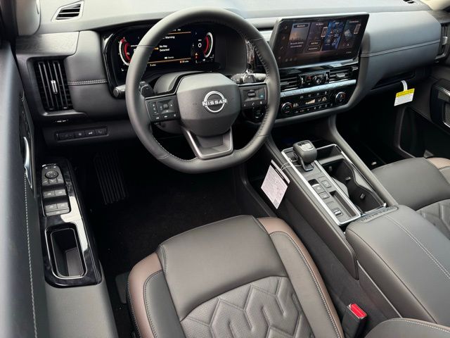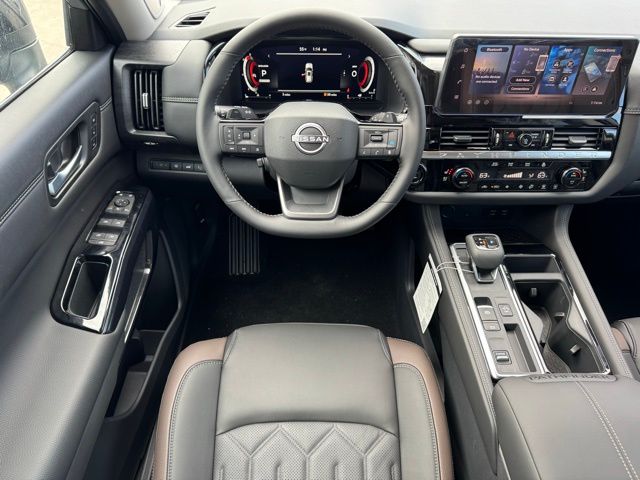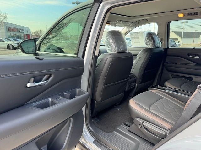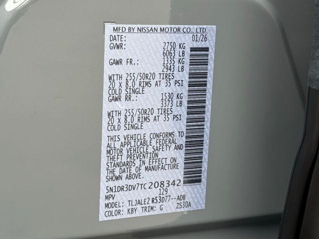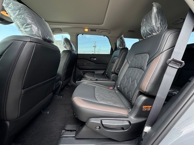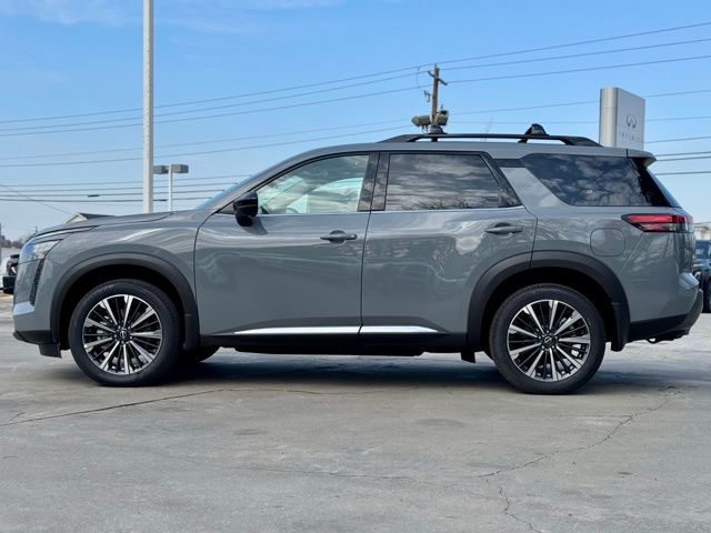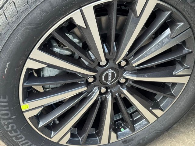 Cargo Package (Cargo Area Protector, Cargo Net, and First Aid), Platinum Captain Chairs Package (2nd-Row Captain Chairs and 2nd-Row Removable Centre Console), 13 Speakers, 3rd row seats: bench, 4-Piece Black Splash Guards, 4-Wheel Disc Brakes, ABS brakes, Air Conditioning, Alloy wheels, AM/FM radio: SiriusXM w/360L, Auto High-beam Headlights, Auto tilt-away steering wheel, Auto-dimming Rear-View mirror, Automatic temperature control, Bodyside moldings, Bose Premium Audio System, Brake assist, Bumpers: body-color, Captain's Chairs Carpeted Floor Mats, Climate Controlled Front Bucket Seats, Cross Bars, Delay-off headlights, Driver door bin, Driver vanity mirror, Dual front impact airbags, Dual front side impact airbags, Electronic Stability Control, Emergency communication system: NissanConnect Services, Four wheel independent suspension, Front anti-roll bar, Front Bucket Seats, Front Center Armrest, Front dual zone A/C, Front reading lights, Fully automatic headlights, Garage door transmitter: HomeLink, Heads-Up Display, Heated door mirrors, Heated front seats, Heated rear seats, Heated steering wheel, Illuminated entry, Knee airbag, Low tire pressure warning, Memory seat, NissanConnect featuring Apple CarPlay and Android Auto, Occupant sensing airbag, Outside temperature display, Overhead airbag, Overhead console, Panic alarm, Passenger door bin, Passenger vanity mirror, Power door mirrors, Power driver seat, Power Liftgate, Power moonroof, Power passenger seat, Power steering, Power windows, Premium Paint, Radio data system, Radio: AM/FM Audio System with NissanConnect, Rain sensing wipers, Rear air conditioning, Rear anti-roll bar, Rear reading lights, Rear seat center armrest, Rear side impact airbag, Rear window defroster, Rear window wiper, Reclining 3rd row seat, Remote keyless entry, Security system, Semi-Aniline Leather-Appointed Seating Surfaces, Speed control, Speed-sensing steering, Speed-Sensitive Wipers, Split folding rear seat, Spoiler, Steering wheel memory, Steering wheel mounted audio controls, Tachometer, Telescoping steering wheel, Tilt steering wheel, Traction control, Trip computer, Turn signal indicator mirrors, Variably intermittent wipers, Ventilated front seats, and Wheels: 20" Machined Alloy. Price includes: $3500 - Nissan Customer Cash. Exp. 05/04/2026 Price includes dealer added accessories.