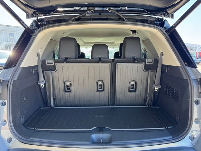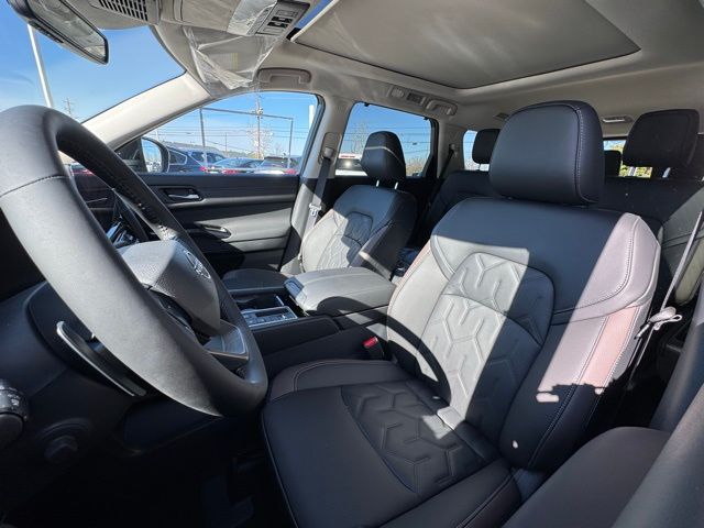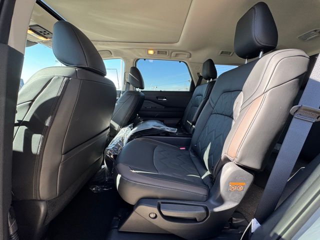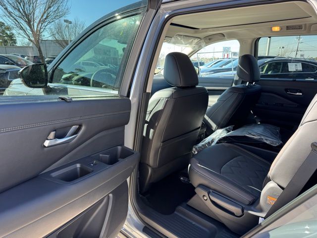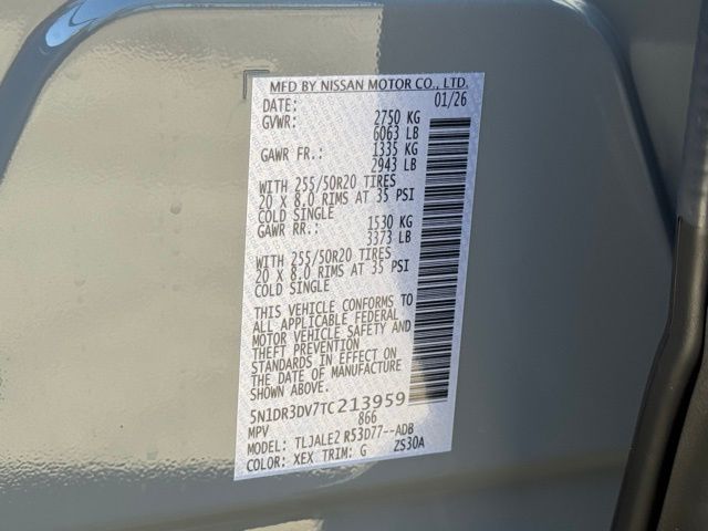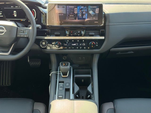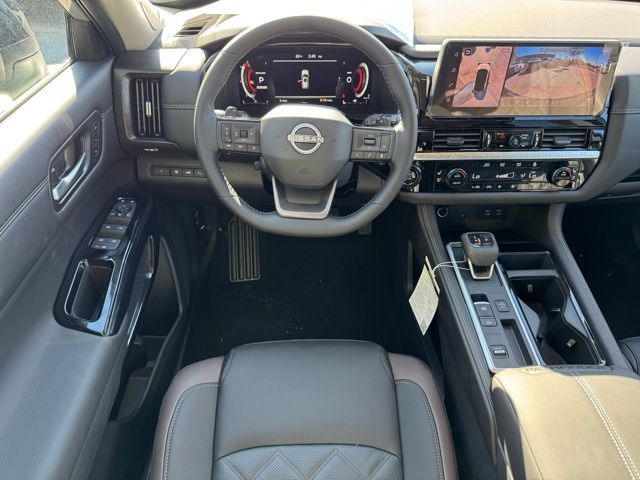 Cargo Package (Cargo Area Protector, Cargo Net, and First Aid), Platinum Captain Chairs Package (2nd-Row Captain Chairs and 2nd-Row Removable Centre Console), 13 Speakers, 3rd row seats: bench, 4-Piece Black Splash Guards, 4-Wheel Disc Brakes, ABS brakes, Air Conditioning, Alloy wheels, AM/FM radio: SiriusXM w/360L, Auto High-beam Headlights, Auto tilt-away steering wheel, Auto-dimming Rear-View mirror, Automatic temperature control, Bodyside moldings, Bose Premium Audio System, Brake assist, Bumpers: body-color, Captain's Chairs Carpeted Floor Mats, Climate Controlled Front Bucket Seats, Cross Bars, Delay-off headlights, Driver door bin, Driver vanity mirror, Dual front impact airbags, Dual front side impact airbags, Electronic Stability Control, Emergency communication system: NissanConnect Services, Four wheel independent suspension, Front anti-roll bar, Front Bucket Seats, Front Center Armrest, Front dual zone A/C, Front reading lights, Fully automatic headlights, Garage door transmitter: HomeLink, Heads-Up Display, Heated door mirrors, Heated front seats, Heated rear seats, Heated steering wheel, Illuminated entry, Knee airbag, Low tire pressure warning, Memory seat, NissanConnect featuring Apple CarPlay and Android Auto, Occupant sensing airbag, Outside temperature display, Overhead airbag, Overhead console, Panic alarm, Passenger door bin, Passenger vanity mirror, Power door mirrors, Power driver seat, Power Liftgate, Power moonroof, Power passenger seat, Power steering, Power windows, Premium Paint and 2-Tone Roof, Radio data system, Radio: AM/FM Audio System with NissanConnect, Rain sensing wipers, Rear air conditioning, Rear anti-roll bar, Rear reading lights, Rear seat center armrest, Rear side impact airbag, Rear window defroster, Rear window wiper, Reclining 3rd row seat, Remote keyless entry, Security system, Semi-Aniline Leather-Appointed Seating Surfaces, Speed control, Speed-sensing steering, Speed-Sensitive Wipers, Split folding rear seat, Spoiler, Steering wheel memory, Steering wheel mounted audio controls, Tachometer, Telescoping steering wheel, Tilt steering wheel, Traction control, Trip computer, Turn signal indicator mirrors, Variably intermittent wipers, Ventilated front seats, and Wheels: 20" Machined Alloy. Price includes: $3500 - Nissan Customer Cash. Exp. 05/04/2026 Price includes dealer added accessories.