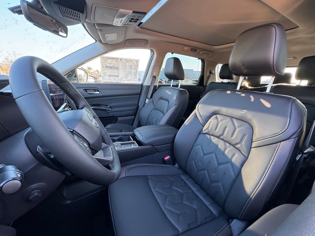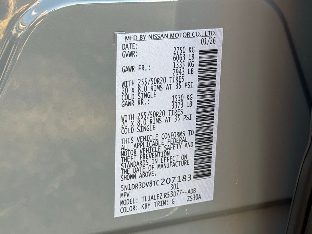 Cargo Package (Cargo Area Protector, Cargo Net, and First Aid), Platinum Captain Chairs Package (2nd-Row Captain Chairs and 2nd-Row Removable Centre Console), 13 Speakers, 3rd row seats: bench, 4-Piece Black Splash Guards, 4-Wheel Disc Brakes, ABS brakes, Air Conditioning, Alloy wheels, AM/FM radio: SiriusXM w/360L, Auto High-beam Headlights, Auto tilt-away steering wheel, Auto-dimming Rear-View mirror, Automatic temperature control, Bodyside moldings, Bose Premium Audio System, Brake assist, Bumpers: body-color, Captain's Chairs Carpeted Floor Mats, Climate Controlled Front Bucket Seats, Cross Bars, Delay-off headlights, Driver door bin, Driver vanity mirror, Dual front impact airbags, Dual front side impact airbags, Electronic Stability Control, Emergency communication system: NissanConnect Services, Four wheel independent suspension, Front anti-roll bar, Front Bucket Seats, Front Center Armrest, Front dual zone A/C, Front reading lights, Fully automatic headlights, Garage door transmitter: HomeLink, Heads-Up Display, Heated door mirrors, Heated front seats, Heated rear seats, Heated steering wheel, Illuminated entry, Knee airbag, Low tire pressure warning, Memory seat, NissanConnect featuring Apple CarPlay and Android Auto, Occupant sensing airbag, Outside temperature display, Overhead airbag, Overhead console, Panic alarm, Passenger door bin, Passenger vanity mirror, Power door mirrors, Power driver seat, Power Liftgate, Power moonroof, Power passenger seat, Power steering, Power windows, Premium Paint, Radio data system, Radio: AM/FM Audio System with NissanConnect, Rain sensing wipers, Rear air conditioning, Rear anti-roll bar, Rear reading lights, Rear seat center armrest, Rear side impact airbag, Rear window defroster, Rear window wiper, Reclining 3rd row seat, Remote keyless entry, Security system, Semi-Aniline Leather-Appointed Seating Surfaces, Speed control, Speed-sensing steering, Speed-Sensitive Wipers, Split folding rear seat, Spoiler, Steering wheel memory, Steering wheel mounted audio controls, Tachometer, Telescoping steering wheel, Tilt steering wheel, Traction control, Trip computer, Turn signal indicator mirrors, Variably intermittent wipers, Ventilated front seats, and Wheels: 20" Machined Alloy. Price includes all rebates: $3500 - Nissan Customer Cash. Exp. 05/04/2026