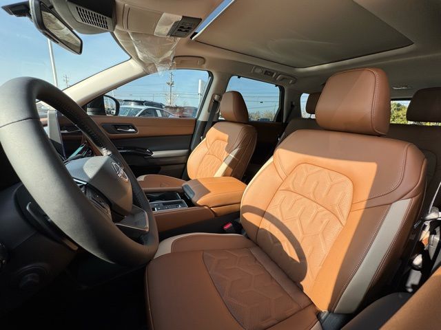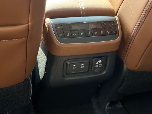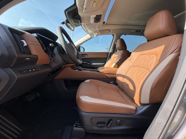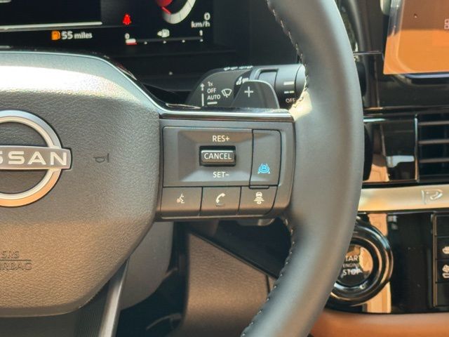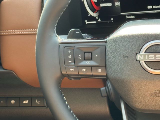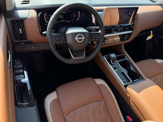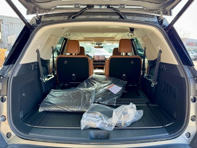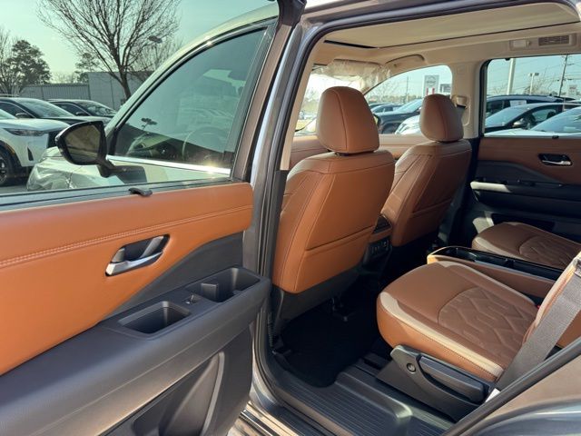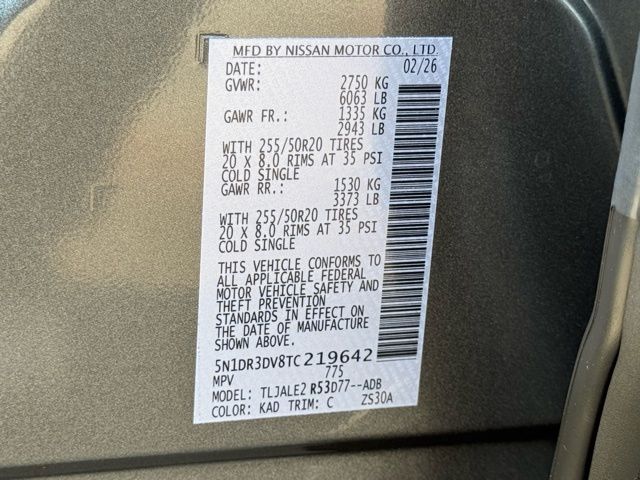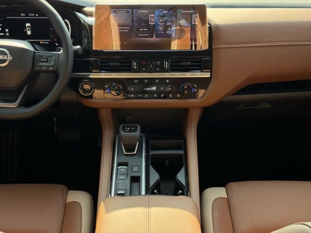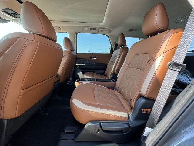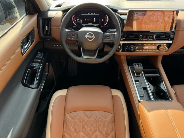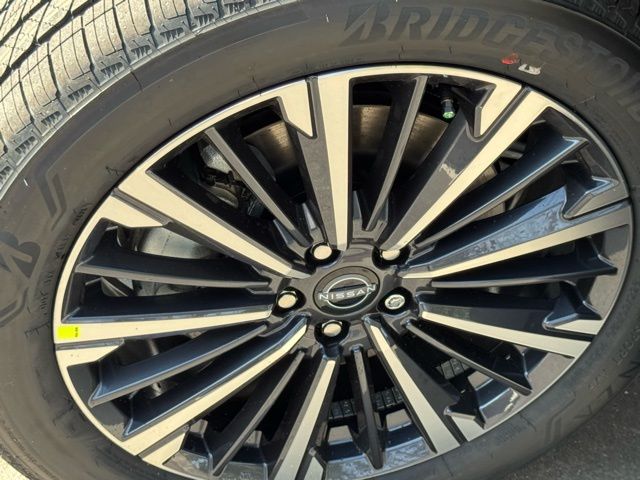 Cargo Package (Cargo Area Protector, Cargo Net, and First Aid), Platinum Captain Chairs Package (2nd-Row Captain Chairs and 2nd-Row Removable Centre Console), 13 Speakers, 3rd row seats: bench, 4-Piece Black Splash Guards, 4-Wheel Disc Brakes, ABS brakes, Air Conditioning, Alloy wheels, AM/FM radio: SiriusXM w/360L, Auto High-beam Headlights, Auto tilt-away steering wheel, Auto-dimming Rear-View mirror, Automatic temperature control, Bodyside moldings, Bose Premium Audio System, Brake assist, Bumpers: body-color, Captain's Chairs Carpeted Floor Mats, Climate Controlled Front Bucket Seats, Cross Bars, Delay-off headlights, Driver door bin, Driver vanity mirror, Dual front impact airbags, Dual front side impact airbags, Electronic Stability Control, Emergency communication system: NissanConnect Services, Four wheel independent suspension, Front anti-roll bar, Front Bucket Seats, Front Center Armrest, Front dual zone A/C, Front reading lights, Fully automatic headlights, Garage door transmitter: HomeLink, Heads-Up Display, Heated door mirrors, Heated front seats, Heated rear seats, Heated steering wheel, Illuminated entry, Knee airbag, Low tire pressure warning, Memory seat, NissanConnect featuring Apple CarPlay and Android Auto, Occupant sensing airbag, Outside temperature display, Overhead airbag, Overhead console, Panic alarm, Passenger door bin, Passenger vanity mirror, Power door mirrors, Power driver seat, Power Liftgate, Power moonroof, Power passenger seat, Power steering, Power windows, Radio data system, Radio: AM/FM Audio System with NissanConnect, Rain sensing wipers, Rear air conditioning, Rear anti-roll bar, Rear reading lights, Rear seat center armrest, Rear side impact airbag, Rear window defroster, Rear window wiper, Reclining 3rd row seat, Remote keyless entry, Security system, Semi-Aniline Leather-Appointed Seating Surfaces, Speed control, Speed-sensing steering, Speed-Sensitive Wipers, Split folding rear seat, Spoiler, Steering wheel memory, Steering wheel mounted audio controls, Tachometer, Telescoping steering wheel, Tilt steering wheel, Traction control, Trip computer, Turn signal indicator mirrors, Variably intermittent wipers, Ventilated front seats, and Wheels: 20" Machined Alloy. Price includes: $3500 - Nissan Customer Cash. Exp. 05/04/2026 Price includes dealer added accessories.