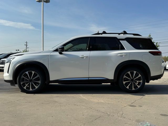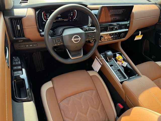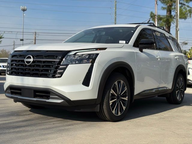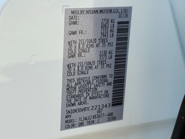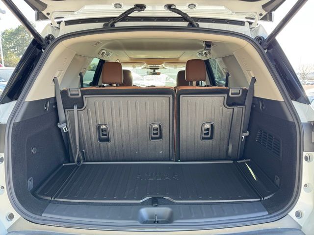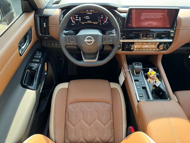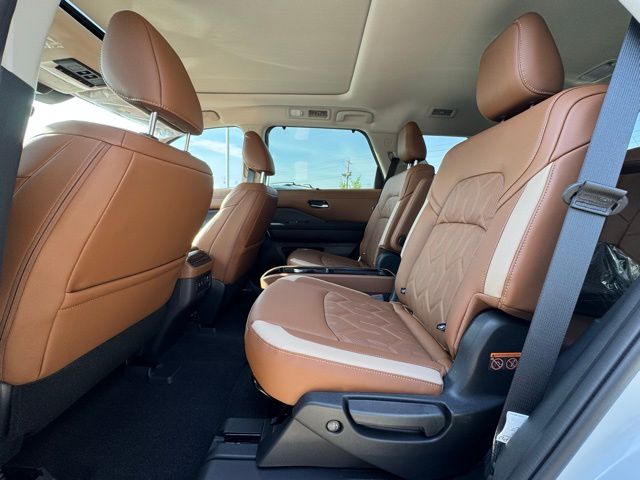 Cargo Package (Cargo Area Protector, Cargo Net, and First Aid), Platinum Captain Chairs Package (2nd-Row Captain Chairs and 2nd-Row Removable Centre Console), 13 Speakers, 3rd row seats: bench, 4-Piece Black Splash Guards, 4-Wheel Disc Brakes, ABS brakes, Air Conditioning, Alloy wheels, AM/FM radio: SiriusXM w/360L, Auto High-beam Headlights, Auto tilt-away steering wheel, Auto-dimming Rear-View mirror, Automatic temperature control, Bodyside moldings, Bose Premium Audio System, Brake assist, Bumpers: body-color, Captain's Chairs Carpeted Floor Mats, Climate Controlled Front Bucket Seats, Cross Bars, Delay-off headlights, Driver door bin, Driver vanity mirror, Dual front impact airbags, Dual front side impact airbags, Electronic Stability Control, Emergency communication system: NissanConnect Services, Four wheel independent suspension, Front anti-roll bar, Front Bucket Seats, Front Center Armrest, Front dual zone A/C, Front reading lights, Fully automatic headlights, Garage door transmitter: HomeLink, Heads-Up Display, Heated door mirrors, Heated front seats, Heated rear seats, Heated steering wheel, Illuminated entry, Knee airbag, Low tire pressure warning, Memory seat, NissanConnect featuring Apple CarPlay and Android Auto, Occupant sensing airbag, Outside temperature display, Overhead airbag, Overhead console, Panic alarm, Passenger door bin, Passenger vanity mirror, Power door mirrors, Power driver seat, Power Liftgate, Power moonroof, Power passenger seat, Power steering, Power windows, Premium Paint, Radio data system, Radio: AM/FM Audio System with NissanConnect, Rain sensing wipers, Rear air conditioning, Rear anti-roll bar, Rear reading lights, Rear seat center armrest, Rear side impact airbag, Rear window defroster, Rear window wiper, Reclining 3rd row seat, Remote keyless entry, Security system, Semi-Aniline Leather-Appointed Seating Surfaces, Speed control, Speed-sensing steering, Speed-Sensitive Wipers, Split folding rear seat, Spoiler, Steering wheel memory, Steering wheel mounted audio controls, Tachometer, Telescoping steering wheel, Tilt steering wheel, Traction control, Trip computer, Turn signal indicator mirrors, Variably intermittent wipers, Ventilated front seats, and Wheels: 20" Machined Alloy. Price includes: $3500 - Nissan Customer Cash. Exp. 05/04/2026 Price includes dealer added accessories.