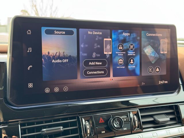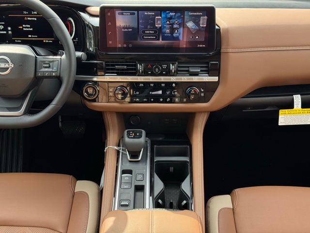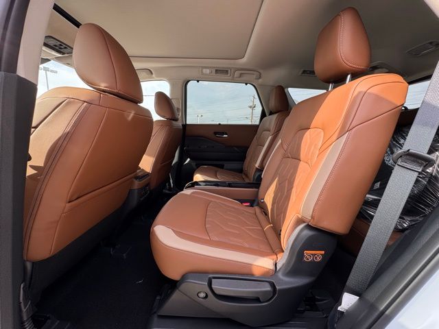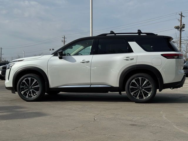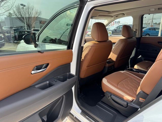 Cargo Package (Cargo Area Protector, Cargo Net, and First Aid), Lighting Package (Illuminated Kick Plate and Welcome Lighting), Platinum Captain Chairs Package (2nd-Row Captain Chairs and 2nd-Row Removable Centre Console), 13 Speakers, 3rd row seats: bench, 4-Piece Black Splash Guards, 4-Wheel Disc Brakes, ABS brakes, Air Conditioning, Alloy wheels, AM/FM radio: SiriusXM w/360L, Auto High-beam Headlights, Auto tilt-away steering wheel, Auto-dimming Rear-View mirror, Automatic temperature control, Bodyside moldings, Bose Premium Audio System, Brake assist, Bumpers: body-color, Captain's Chairs Carpeted Floor Mats, Climate Controlled Front Bucket Seats, Cross Bars, Delay-off headlights, Driver door bin, Driver vanity mirror, Dual front impact airbags, Dual front side impact airbags, Electronic Stability Control, Emergency communication system: NissanConnect Services, Four wheel independent suspension, Front anti-roll bar, Front Bucket Seats, Front Center Armrest, Front dual zone A/C, Front reading lights, Fully automatic headlights, Garage door transmitter: HomeLink, Heads-Up Display, Heated door mirrors, Heated front seats, Heated rear seats, Heated steering wheel, Illuminated entry, Knee airbag, Low tire pressure warning, Memory seat, Nissan USB Charging Cable Set, NissanConnect featuring Apple CarPlay and Android Auto, Occupant sensing airbag, Outside temperature display, Overhead airbag, Overhead console, Panic alarm, Passenger door bin, Passenger vanity mirror, Power door mirrors, Power driver seat, Power Liftgate, Power moonroof, Power passenger seat, Power steering, Power windows, Premium Paint and 2-Tone Roof, Radio data system, Radio: AM/FM Audio System with NissanConnect, Rain sensing wipers, Rear air conditioning, Rear anti-roll bar, Rear reading lights, Rear seat center armrest, Rear side impact airbag, Rear window defroster, Rear window wiper, Reclining 3rd row seat, Remote keyless entry, Security system, Semi-Aniline Leather-Appointed Seating Surfaces, Speed control, Speed-sensing steering, Speed-Sensitive Wipers, Split folding rear seat, Spoiler, Steering wheel memory, Steering wheel mounted audio controls, Tachometer, Telescoping steering wheel, Tilt steering wheel, Traction control, Trip computer, Turn signal indicator mirrors, Variably intermittent wipers, Ventilated front seats, and Wheels: 20" Machined Alloy. Price includes: $3500 - Nissan Customer Cash. Exp. 05/04/2026 Price includes dealer added accessories.