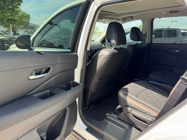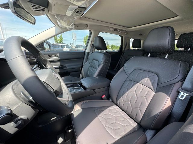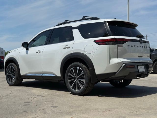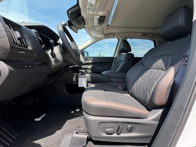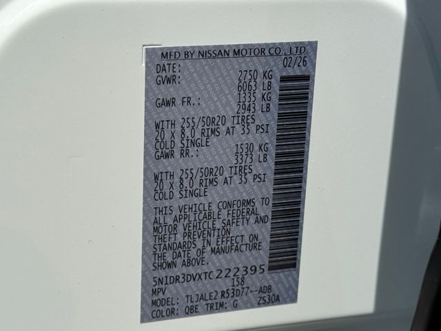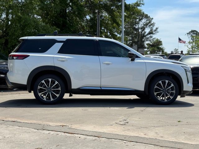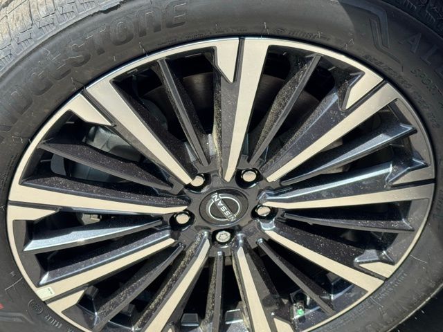 Cargo Package (Cargo Area Protector, Cargo Net, and First Aid), Platinum Captain Chairs Package (2nd-Row Captain Chairs and 2nd-Row Removable Centre Console), 13 Speakers, 3rd row seats: bench, 4-Piece Black Splash Guards, 4-Wheel Disc Brakes, ABS brakes, Air Conditioning, Alloy wheels, AM/FM radio: SiriusXM w/360L, Auto High-beam Headlights, Auto tilt-away steering wheel, Auto-dimming Rear-View mirror, Automatic temperature control, Bodyside moldings, Bose Premium Audio System, Brake assist, Bumpers: body-color, Captain's Chairs Carpeted Floor Mats, Climate Controlled Front Bucket Seats, Cross Bars, Delay-off headlights, Driver door bin, Driver vanity mirror, Dual front impact airbags, Dual front side impact airbags, Electronic Stability Control, Emergency communication system: NissanConnect Services, Four wheel independent suspension, Front anti-roll bar, Front Bucket Seats, Front Center Armrest, Front dual zone A/C, Front reading lights, Fully automatic headlights, Garage door transmitter: HomeLink, Heads-Up Display, Heated door mirrors, Heated front seats, Heated rear seats, Heated steering wheel, Illuminated entry, Knee airbag, Low tire pressure warning, Memory seat, NissanConnect featuring Apple CarPlay and Android Auto, Occupant sensing airbag, Outside temperature display, Overhead airbag, Overhead console, Panic alarm, Passenger door bin, Passenger vanity mirror, Power door mirrors, Power driver seat, Power Liftgate, Power moonroof, Power passenger seat, Power steering, Power windows, Premium Paint, Radio data system, Radio: AM/FM Audio System with NissanConnect, Rain sensing wipers, Rear air conditioning, Rear anti-roll bar, Rear reading lights, Rear seat center armrest, Rear side impact airbag, Rear window defroster, Rear window wiper, Reclining 3rd row seat, Remote keyless entry, Security system, Semi-Aniline Leather-Appointed Seating Surfaces, Speed control, Speed-sensing steering, Speed-Sensitive Wipers, Split folding rear seat, Spoiler, Steering wheel memory, Steering wheel mounted audio controls, Tachometer, Telescoping steering wheel, Tilt steering wheel, Traction control, Trip computer, Turn signal indicator mirrors, Variably intermittent wipers, Ventilated front seats, and Wheels: 20" Machined Alloy. Price includes: $3500 - Nissan Customer Cash. Exp. 05/04/2026 Price includes dealer added accessories.