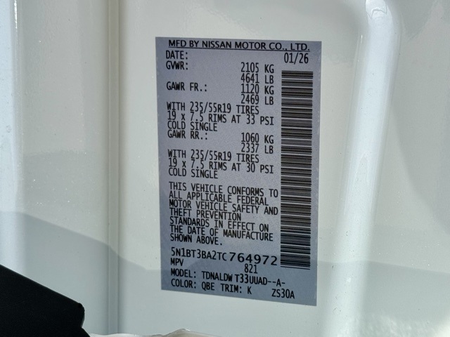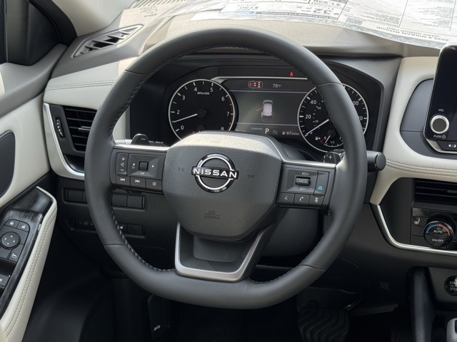4-Wheel Disc Brakes, 6 Speakers, ABS brakes, Air Conditioning, Alloy wheels, AM/FM radio, Apple CarPlay/Android Auto, Auto High-beam Headlights, Automatic temperature control, Black Splash Guards (set of 4), Brake assist, Bumpers: body-color, Delay-off headlights, Driver door bin, Driver vanity mirror, Dual front impact airbags, Dual front side impact airbags, Electronic Stability Control, Emergency communication system: NissanConnect Services, Exterior Parking Camera Rear, Floor Mats with 1-Piece Cargo Area Protector, Four wheel independent suspension, Frameless Rearview Mirror with Universal Remote, Front anti-roll bar, Front Bucket Seats, Front Center Armrest, Front dual zone A/C, Front reading lights, Fully automatic headlights, Heated door mirrors, Heated Front Bucket Seats, Heated front seats, Heated steering wheel, Illuminated entry, Illuminated Kick Plates, Knee airbag, Low tire pressure warning, Occupant sensing airbag, Outside temperature display, Overhead airbag, Overhead console, Panic alarm, Passenger door bin, Passenger vanity mirror, Power door mirrors, Power driver seat, Power Liftgate, Power moonroof, Power steering, Power windows, Premium Paint, Prima-Tex Leatherette Seat Trim, Radio data system, Radio: AM/FM NissanConnect, Rear anti-roll bar, Rear Parking Sensors, Rear reading lights, Rear seat center armrest, Rear side impact airbag, Rear window defroster, Rear window wiper, Remote keyless entry, Retractable Cargo Cover, Speed control, Speed-sensing steering, Speed-Sensitive Wipers, Split folding rear seat, Spoiler, Steering wheel mounted audio controls, Tachometer, Telescoping steering wheel, Tilt steering wheel, Traction control, Trip computer, USB Charging Cable Set, Variably intermittent wipers, and Wheels: 19" Black Painted and Machine Finished Alloy. Price includes: $3500 - Nissan Customer Cash. Exp. 03/02/2026 Price includes dealer added accessories.