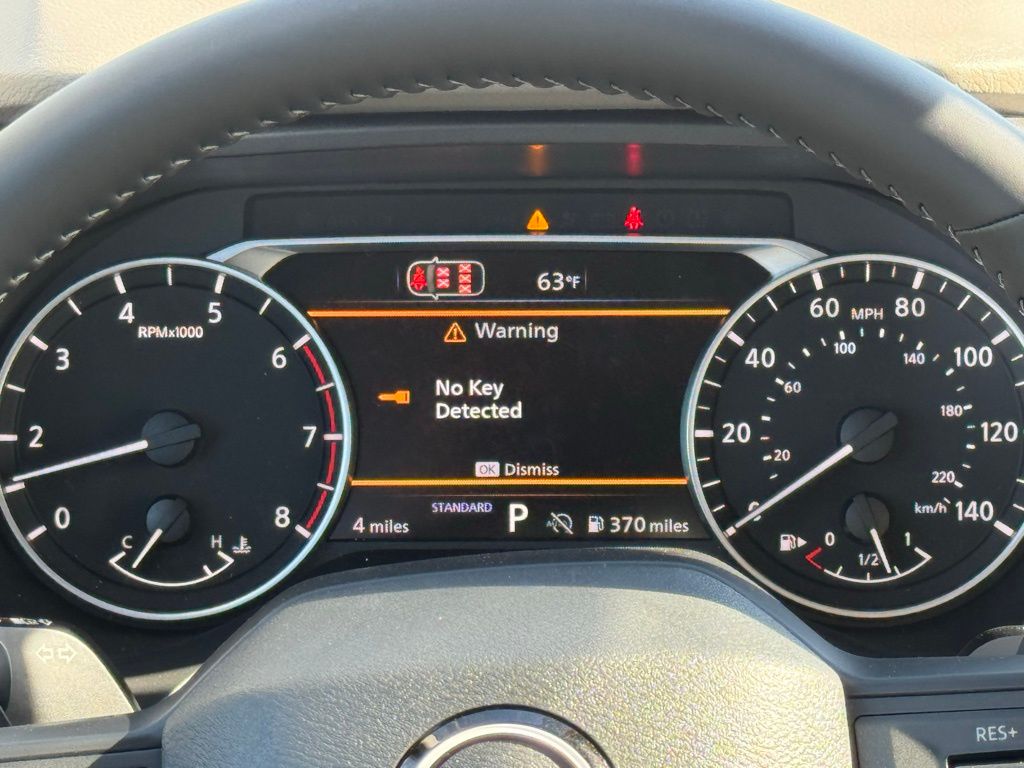4-Wheel Disc Brakes, 6 Speakers, ABS brakes, Air Conditioning, Alloy wheels, AM/FM radio, Apple CarPlay/Android Auto, Auto High-beam Headlights, Automatic temperature control, Black Splash Guards (set of 4), Brake assist, Bumpers: body-color, Delay-off headlights, Driver door bin, Driver vanity mirror, Dual front impact airbags, Dual front side impact airbags, Electronic Stability Control, Emergency communication system: NissanConnect Services, Exterior Parking Camera Rear, First Aid Kit, Floor Mats with 1-Piece Cargo Area Protector, Four wheel independent suspension, Frameless Rearview Mirror with Universal Remote, Front anti-roll bar, Front Bucket Seats, Front Center Armrest, Front dual zone A/C, Front reading lights, Fully automatic headlights, Heated door mirrors, Heated Front Bucket Seats, Heated front seats, Heated steering wheel, Illuminated entry, Illuminated Kick Plates, Knee airbag, Low tire pressure warning, Occupant sensing airbag, Outside temperature display, Overhead airbag, Overhead console, Panic alarm, Passenger door bin, Passenger vanity mirror, Power door mirrors, Power driver seat, Power Liftgate, Power moonroof, Power steering, Power windows, Premium Paint, Prima-Tex Leatherette Seat Trim, Radio data system, Radio: AM/FM NissanConnect, Rear anti-roll bar, Rear Parking Sensors, Rear reading lights, Rear seat center armrest, Rear side impact airbag, Rear window defroster, Rear window wiper, Remote keyless entry, Speed control, Speed-sensing steering, Speed-Sensitive Wipers, Split folding rear seat, Spoiler, Steering wheel mounted audio controls, Tachometer, Telescoping steering wheel, Tilt steering wheel, Traction control, Trip computer, Variably intermittent wipers, and Wheels: 19" Black Painted and Machine Finished Alloy. Price includes all rebates: $3500 - Nissan Customer Cash. Exp. 05/04/2026
