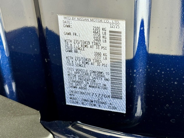 4-Wheel Disc Brakes, 6 Speakers, ABS brakes, Air Conditioning, Alloy wheels, AM/FM radio, Apple CarPlay/Android Auto, Auto High-beam Headlights, Automatic temperature control, Brake assist, Bumpers: body-color, Delay-off headlights, Driver door bin, Driver vanity mirror, Dual front impact airbags, Dual front side impact airbags, Electronic Stability Control, Emergency communication system: NissanConnect Services, Four wheel independent suspension, Front anti-roll bar, Front Bucket Seats, Front Center Armrest, Front dual zone A/C, Front reading lights, Fully automatic headlights, Heated door mirrors, Illuminated entry, Knee airbag, Low tire pressure warning, Occupant sensing airbag, Outside temperature display, Overhead airbag, Overhead console, Panic alarm, Passenger door bin, Passenger vanity mirror, Power door mirrors, Power driver seat, Power Liftgate, Power steering, Power windows, Prima-Tex Leatherette Seat Trim, Radio data system, Radio: AM/FM NissanConnect, Rear anti-roll bar, Rear seat center armrest, Rear side impact airbag, Rear window defroster, Rear window wiper, Remote keyless entry, Speed control, Speed-sensing steering, Speed-Sensitive Wipers, Split folding rear seat, Spoiler, Steering wheel mounted audio controls, Tachometer, Telescoping steering wheel, Tilt steering wheel, Traction control, Trip computer, USB Charging Cable Set, and Variably intermittent wipers. Price includes: $3500 - Nissan Customer Cash. Exp. 03/02/2026 Price includes dealer added accessories.