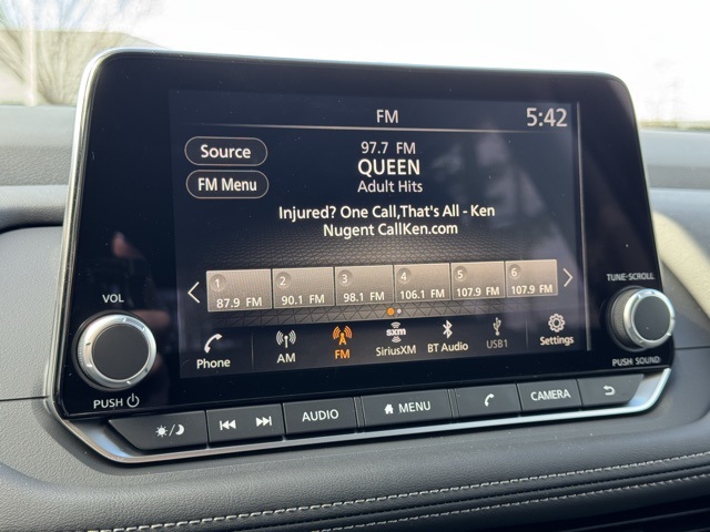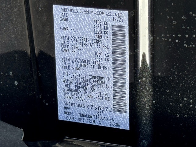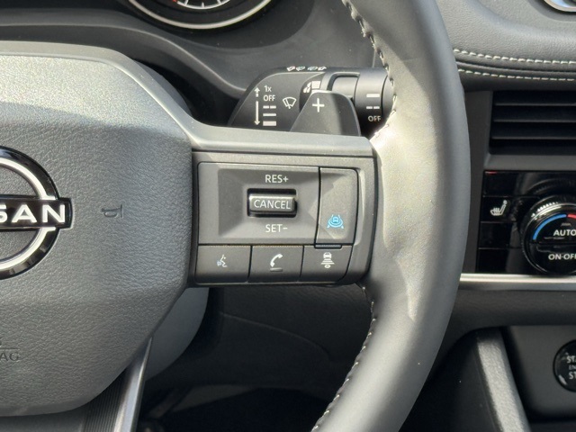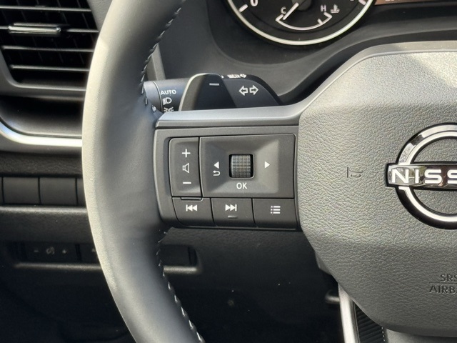 4-Wheel Disc Brakes, 6 Speakers, ABS brakes, Air Conditioning, Alloy wheels, AM/FM radio, Apple CarPlay/Android Auto, Auto High-beam Headlights, Automatic temperature control, Brake assist, Bumpers: body-color, Delay-off headlights, Driver door bin, Driver vanity mirror, Dual front impact airbags, Dual front side impact airbags, Electronic Stability Control, Emergency communication system: NissanConnect Services, Four wheel independent suspension, Front anti-roll bar, Front Bucket Seats, Front Center Armrest, Front dual zone A/C, Front reading lights, Fully automatic headlights, Heated door mirrors, Illuminated entry, Knee airbag, Low tire pressure warning, Occupant sensing airbag, Outside temperature display, Overhead airbag, Overhead console, Panic alarm, Passenger door bin, Passenger vanity mirror, Power door mirrors, Power driver seat, Power Liftgate, Power steering, Power windows, Prima-Tex Leatherette Seat Trim, Radio data system, Radio: AM/FM NissanConnect, Rear anti-roll bar, Rear seat center armrest, Rear side impact airbag, Rear window defroster, Rear window wiper, Remote keyless entry, Speed control, Speed-sensing steering, Speed-Sensitive Wipers, Split folding rear seat, Spoiler, Steering wheel mounted audio controls, Tachometer, Telescoping steering wheel, Tilt steering wheel, Traction control, Trip computer, USB Charging Cable Set, and Variably intermittent wipers.