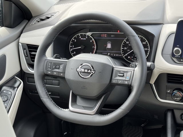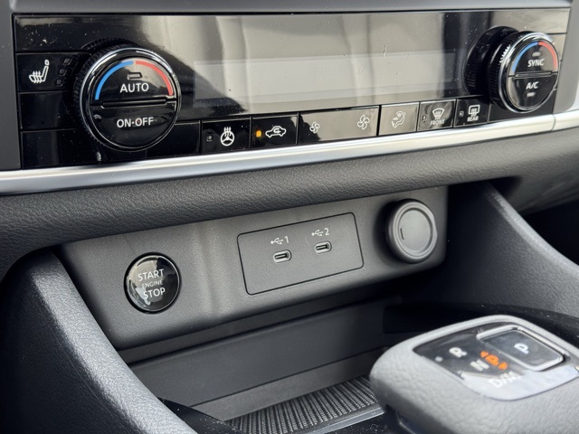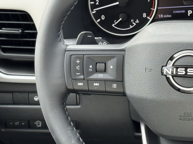 4-Wheel Disc Brakes, 6 Speakers, ABS brakes, Air Conditioning, Alloy wheels, AM/FM radio, Apple CarPlay/Android Auto, Auto High-beam Headlights, Automatic temperature control, Brake assist, Bumpers: body-color, Delay-off headlights, Driver door bin, Driver vanity mirror, Dual front impact airbags, Dual front side impact airbags, Electronic Stability Control, Emergency communication system: NissanConnect Services, Four wheel independent suspension, Front anti-roll bar, Front Bucket Seats, Front Center Armrest, Front dual zone A/C, Front reading lights, Fully automatic headlights, Heated door mirrors, Illuminated entry, Knee airbag, Low tire pressure warning, Occupant sensing airbag, Outside temperature display, Overhead airbag, Overhead console, Panic alarm, Passenger door bin, Passenger vanity mirror, Power door mirrors, Power driver seat, Power Liftgate, Power steering, Power windows, Prima-Tex Leatherette Seat Trim, Radio data system, Radio: AM/FM NissanConnect, Rear anti-roll bar, Rear seat center armrest, Rear side impact airbag, Rear window defroster, Rear window wiper, Remote keyless entry, Speed control, Speed-sensing steering, Speed-Sensitive Wipers, Split folding rear seat, Spoiler, Steering wheel mounted audio controls, Tachometer, Telescoping steering wheel, Tilt steering wheel, Traction control, Trip computer, USB Charging Cable Set, and Variably intermittent wipers.