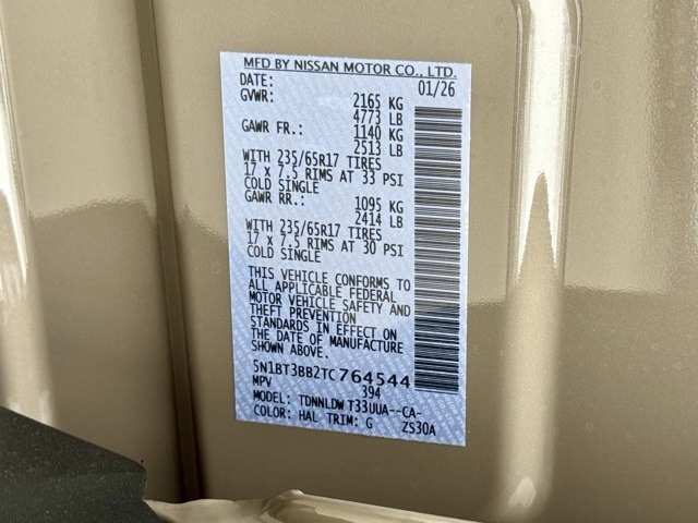 Rock Creek Premium Package (4-Way Power Passenger Seat, Auto-Dimming Inside Mirror, Heated Steering Wheel, Interior LED Accent Lighting, Memory Driver Seat and Outside Mirrors, Motion-Activated Power Liftgate, Reverse Tilt-Down Outside Mirrors, and Wireless Charging Pad), 4-Wheel Disc Brakes, 6 Speakers, ABS brakes, Air Conditioning, Alloy wheels, AM/FM radio, Apple CarPlay/Android Auto, Auto High-beam Headlights, Automatic temperature control, Brake assist, Delay-off headlights, Driver door bin, Driver vanity mirror, Dual front impact airbags, Dual front side impact airbags, Electronic Stability Control, Emergency communication system: NissanConnect Services, First Aid Kit, Four wheel independent suspension, Front anti-roll bar, Front Bucket Seats, Front Center Armrest, Front dual zone A/C, Front reading lights, Fully automatic headlights, Heated door mirrors, Heated Front Bucket Seats, Heated front seats, Illuminated entry, Knee airbag, Leatherette and Ballistic Nylon Seating, Low tire pressure warning, Occupant sensing airbag, Outside temperature display, Overhead airbag, Overhead console, Panic alarm, Passenger door bin, Passenger vanity mirror, Power door mirrors, Power driver seat, Power Liftgate, Power steering, Power windows, Premium Paint, Radio data system, Radio: AM/FM NissanConnect, Rear anti-roll bar, Rear Parking Sensors, Rear seat center armrest, Rear side impact airbag, Rear window defroster, Rear window wiper, Remote keyless entry, Roof rack, Speed control, Speed-sensing steering, Speed-Sensitive Wipers, Split folding rear seat, Spoiler, Steering wheel mounted audio controls, Tachometer, Telescoping steering wheel, Tilt steering wheel, Traction control, Trip computer, Variably intermittent wipers, and Wheels: 17" Dark Painted Alloy. Price includes: $3500 - Nissan Customer Cash. Exp. 03/02/2026 Price includes dealer added accessories.