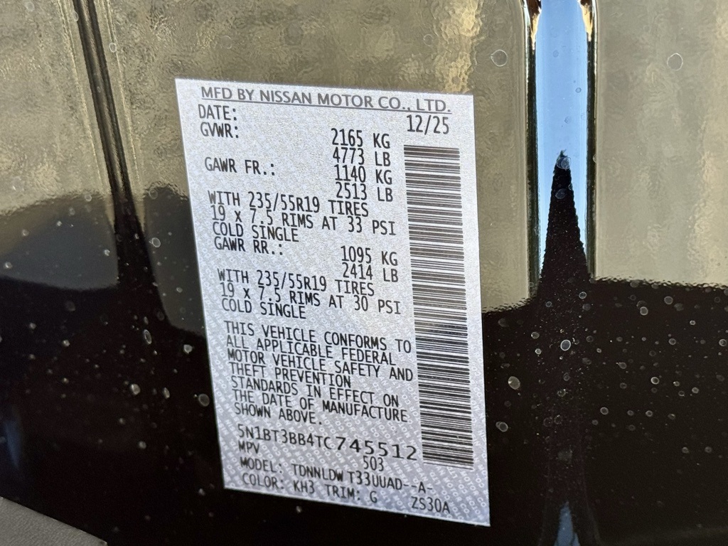 AWD, 4-Wheel Disc Brakes, 6 Speakers, ABS brakes, Air Conditioning, Alloy wheels, AM/FM radio, Apple CarPlay/Android Auto, Auto High-beam Headlights, Automatic temperature control, Black Splash Guards (set of 4), Brake assist, Bumpers: body-color, Delay-off headlights, Driver door bin, Driver vanity mirror, Dual front impact airbags, Dual front side impact airbags, Electronic Stability Control, Emergency communication system: NissanConnect Services, Exterior Parking Camera Rear, Floor Mats with 1-Piece Cargo Area Protector, Four wheel independent suspension, Frameless Rearview Mirror with Universal Remote, Front anti-roll bar, Front Bucket Seats, Front Center Armrest, Front dual zone A/C, Front reading lights, Fully automatic headlights, Heated door mirrors, Heated Front Bucket Seats, Heated front seats, Heated steering wheel, Illuminated entry, Illuminated Kick Plates, Knee airbag, Low tire pressure warning, Occupant sensing airbag, Outside temperature display, Overhead airbag, Overhead console, Panic alarm, Passenger door bin, Passenger vanity mirror, Power door mirrors, Power driver seat, Power Liftgate, Power moonroof, Power steering, Power windows, Prima-Tex Leatherette Seat Trim, Radio data system, Radio: AM/FM NissanConnect, Rear anti-roll bar, Rear Parking Sensors, Rear reading lights, Rear seat center armrest, Rear side impact airbag, Rear window defroster, Rear window wiper, Remote keyless entry, Speed control, Speed-sensing steering, Speed-Sensitive Wipers, Split folding rear seat, Spoiler, Steering wheel mounted audio controls, Tachometer, Telescoping steering wheel, Tilt steering wheel, Traction control, Trip computer, Variably intermittent wipers, and Wheels: 19" Black Painted and Machine Finished Alloy. Price includes all rebates: $3500 - Nissan Customer Cash. Exp. 03/02/2026