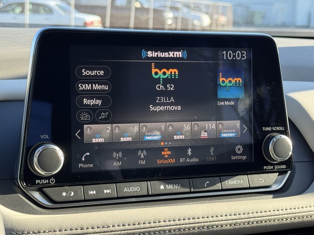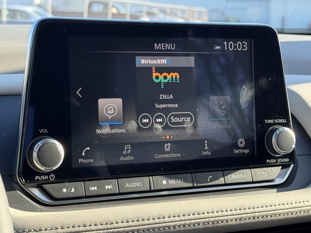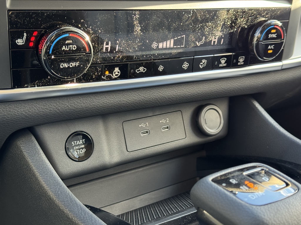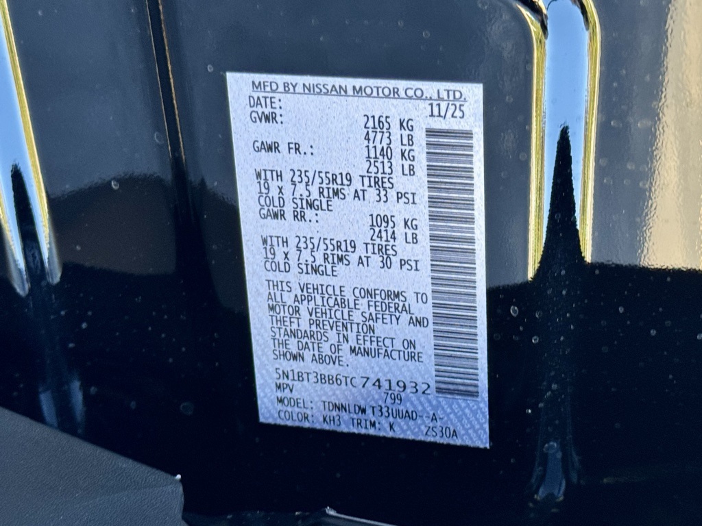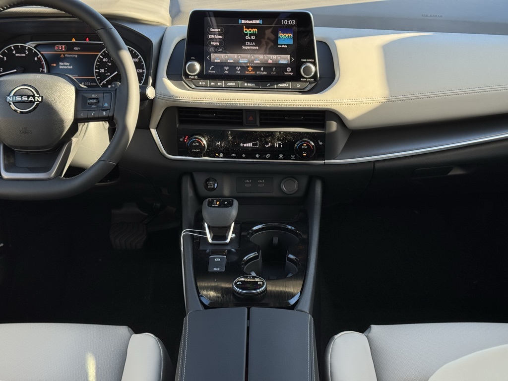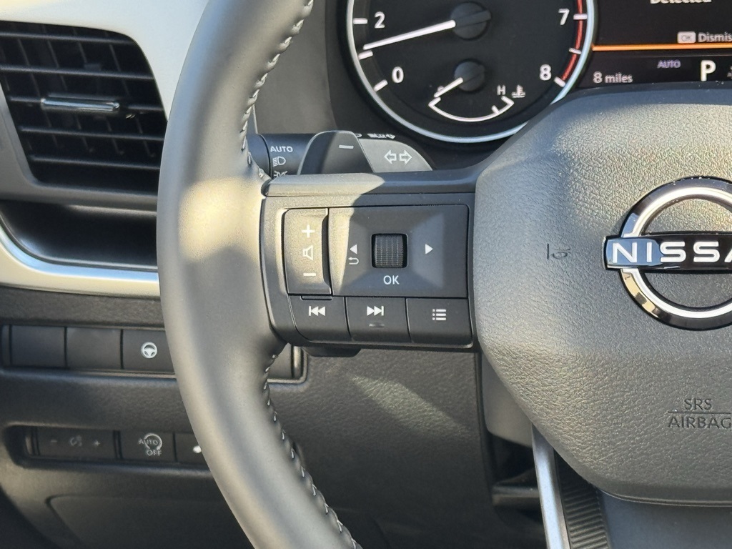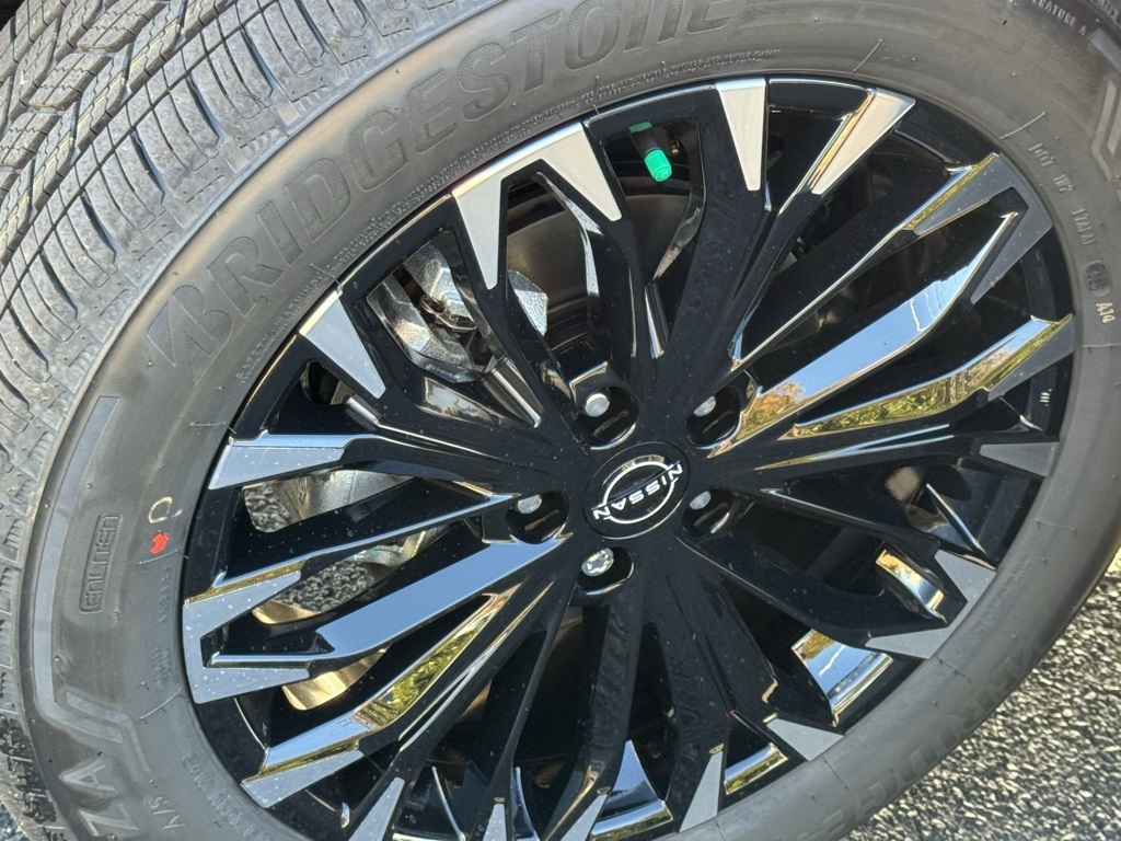 AWD, 4-Wheel Disc Brakes, 6 Speakers, ABS brakes, Air Conditioning, Alloy wheels, AM/FM radio, Apple CarPlay/Android Auto, Auto High-beam Headlights, Automatic temperature control, Black Splash Guards (set of 4), Brake assist, Bumpers: body-color, Delay-off headlights, Driver door bin, Driver vanity mirror, Dual front impact airbags, Dual front side impact airbags, Electronic Stability Control, Emergency communication system: NissanConnect Services, Exterior Parking Camera Rear, Floor Mats with 1-Piece Cargo Area Protector, Four wheel independent suspension, Frameless Rearview Mirror with Universal Remote, Front anti-roll bar, Front Bucket Seats, Front Center Armrest, Front dual zone A/C, Front reading lights, Fully automatic headlights, Heated door mirrors, Heated Front Bucket Seats, Heated front seats, Heated steering wheel, Illuminated entry, Illuminated Kick Plates, Knee airbag, Low tire pressure warning, Occupant sensing airbag, Outside temperature display, Overhead airbag, Overhead console, Panic alarm, Passenger door bin, Passenger vanity mirror, Power door mirrors, Power driver seat, Power Liftgate, Power moonroof, Power steering, Power windows, Prima-Tex Leatherette Seat Trim, Radio data system, Radio: AM/FM NissanConnect, Rear anti-roll bar, Rear Parking Sensors, Rear reading lights, Rear seat center armrest, Rear side impact airbag, Rear window defroster, Rear window wiper, Remote keyless entry, Speed control, Speed-sensing steering, Speed-Sensitive Wipers, Split folding rear seat, Spoiler, Steering wheel mounted audio controls, Tachometer, Telescoping steering wheel, Tilt steering wheel, Traction control, Trip computer, Variably intermittent wipers, and Wheels: 19" Black Painted and Machine Finished Alloy.