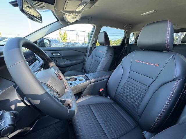 Rock Creek Premium Package (4-Way Power Passenger Seat, Auto-Dimming Inside Mirror, Interior LED Accent Lighting, Memory Driver Seat & Outside Mirrors, Motion-Activated Power Liftgate, Reverse Tilt-Down Outside Mirrors, and Wireless Charging Pad), 4-Wheel Disc Brakes, 6 Speakers, ABS brakes, Air Conditioning, Alloy wheels, AM/FM radio: Sirius, Apple CarPlay/Android Auto, Auto High-beam Headlights, Automatic temperature control, Black Splash Guards (Set of 4), Brake assist, Delay-off headlights, Driver door bin, Driver vanity mirror, Dual front impact airbags, Dual front side impact airbags, Electronic Stability Control, Emergency communication system: NissanConnect Services, Four wheel independent suspension, Front anti-roll bar, Front Bucket Seats, Front Center Armrest, Front dual zone A/C, Front reading lights, Fully automatic headlights, Heated door mirrors, Heated Front Bucket Seats, Heated front seats, Illuminated entry, Knee airbag, Leatherette & Ballistic Nylon Seating, Low tire pressure warning, Occupant sensing airbag, Outside temperature display, Overhead airbag, Overhead console, Panic alarm, Passenger door bin, Passenger vanity mirror, Power door mirrors, Power driver seat, Power Liftgate, Power steering, Power windows, Premium Paint, Radio data system, Radio: AM/FM NissanConnect, Rear anti-roll bar, Rear seat center armrest, Rear side impact airbag, Rear window defroster, Rear window wiper, Remote keyless entry, Roof rack, Speed control, Speed-sensing steering, Speed-Sensitive Wipers, Split folding rear seat, Spoiler, Steering wheel mounted audio controls, Tachometer, Telescoping steering wheel, Tilt steering wheel, Traction control, Trip computer, Variably intermittent wipers, and Wheels: 17" Dark Painted Alloy.
