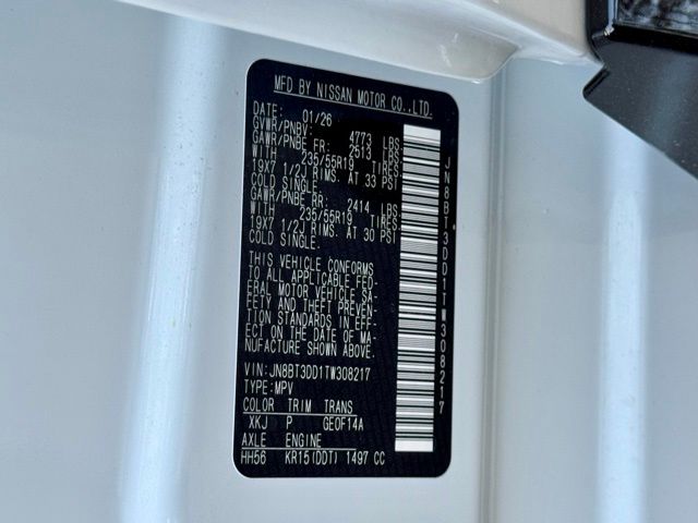 10 Speakers, 4-Wheel Disc Brakes, ABS brakes, Air Conditioning, Alloy wheels, AM/FM radio: SiriusXM w/360L, Auto High-beam Headlights, Auto-dimming Rear-View mirror, Automatic temperature control, Black Splash Guards (set of 4), Bose Premium Audio System, Brake assist, Bumpers: body-color, Chrome Rear Bumper Protector, Delay-off headlights, Driver door bin, Driver vanity mirror, Dual front impact airbags, Dual front side impact airbags, Electronic Stability Control, Emergency communication system: NissanConnect Services, First Aid Kit, Floor Mats with 2-Piece Cargo Area Protector, Four wheel independent suspension, Front anti-roll bar, Front Bucket Seats, Front Center Armrest, Front dual zone A/C, Front reading lights, Fully automatic headlights, Garage door transmitter: myQ Connected Garage, Heated door mirrors, Heated Front Bucket Seats, Heated front seats, Heated steering wheel, Illuminated entry, Knee airbag, Low tire pressure warning, Memory seat, Navigation system: Google Maps, Occupant sensing airbag, Outside temperature display, Overhead airbag, Overhead console, Panic alarm, Passenger door bin, Passenger vanity mirror, Power door mirrors, Power driver seat, Power Liftgate, Power moonroof, Power passenger seat, Power steering, Power windows, Premium Paint with Two-Tone, Quilted Semi-Aniline Leather-Appointed Seat Trim, Radio data system, Radio: AM/FM NissanConnect with Navigation, Rear anti-roll bar, Rear reading lights, Rear seat center armrest, Rear side impact airbag, Rear window defroster, Rear window wiper, Remote keyless entry, Roof Rail Cross Bars, Security system, Speed control, Speed-sensing steering, Speed-Sensitive Wipers, Split folding rear seat, Spoiler, Steering wheel mounted audio controls, Tachometer, Telescoping steering wheel, Tilt steering wheel, Traction control, Trip computer, Turn signal indicator mirrors, USB Charging Cable Set, Variably intermittent wipers, Wheels: 19" Unique Dark Painted Aluminum Alloy, and Wireless Apple CarPlay/Wireless Android Auto. Price includes: $3500 - Nissan Customer Cash. Exp. 05/04/2026 Price includes dealer added accessories.
