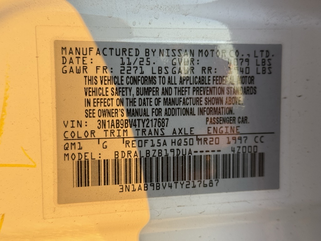 Floor Mat Package, CVT with Xtronic, Charcoal Cloth, 4 Speakers, 4-Wheel Disc Brakes, ABS brakes, Air Conditioning, AM/FM radio: Sirius, Auto High-beam Headlights, Body Colored Splash Guards (4-Piece), Brake assist, Bumpers: body-color, Cloth Seat Trim, Delay-off headlights, Driver door bin, Driver vanity mirror, Dual front impact airbags, Dual front side impact airbags, Electronic Stability Control, Four wheel independent suspension, Front anti-roll bar, Front Bucket Seats, Front Center Armrest, Front reading lights, Fully automatic headlights, Illuminated entry, Knee airbag, Low tire pressure warning, Occupant sensing airbag, Outside temperature display, Overhead airbag, Overhead console, Panic alarm, Passenger door bin, Passenger vanity mirror, Power door mirrors, Power steering, Power windows, Radio data system, Radio: AM/FM with RDS/MP3, Rear anti-roll bar, Rear side impact airbag, Rear window defroster, Remote keyless entry, Speed control, Speed-sensing steering, Split folding rear seat, Steering wheel mounted audio controls, Tachometer, Telescoping steering wheel, Tilt steering wheel, Traction control, Trip computer, Variably intermittent wipers, Wheels: 16" Steel with Full Covers, and Wireless Apple CarPlay/Wireless Android Auto. Price includes all rebates: $500 - Nissan MY26 Sentra Customer Cash (All Markets) - February. Exp. 03/02/2026