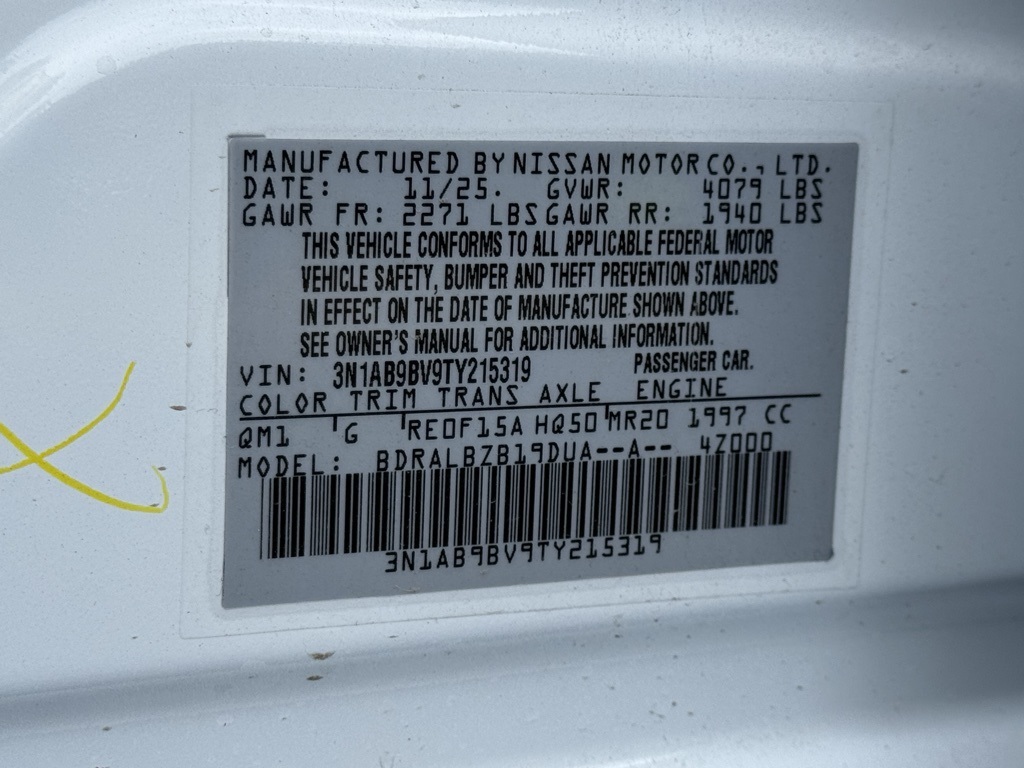 Floor Mat Package, S Cold Weather Package (Heated Front Seats and Heated Mirrors), CVT with Xtronic, Charcoal Cloth, 4 Speakers, 4-Wheel Disc Brakes, ABS brakes, Air Conditioning, AM/FM radio: Sirius, Auto High-beam Headlights, Body Colored Splash Guards (4-Piece), Brake assist, Bumpers: body-color, Cloth Seat Trim, Delay-off headlights, Driver door bin, Driver vanity mirror, Dual front impact airbags, Dual front side impact airbags, Electronic Stability Control, Four wheel independent suspension, Front anti-roll bar, Front Bucket Seats, Front Center Armrest, Front reading lights, Fully automatic headlights, Illuminated entry, Knee airbag, Low tire pressure warning, Occupant sensing airbag, Outside temperature display, Overhead airbag, Overhead console, Panic alarm, Passenger door bin, Passenger vanity mirror, Power door mirrors, Power steering, Power windows, Radio data system, Radio: AM/FM with RDS/MP3, Rear anti-roll bar, Rear side impact airbag, Rear window defroster, Remote keyless entry, Speed control, Speed-sensing steering, Split folding rear seat, Steering wheel mounted audio controls, Tachometer, Telescoping steering wheel, Tilt steering wheel, Traction control, Trip computer, Variably intermittent wipers, Wheels: 16" Steel with Full Covers, and Wireless Apple CarPlay/Wireless Android Auto. Price includes all rebates: $500 - Nissan MY26 Sentra Customer Cash (All Markets) - February. Exp. 03/02/2026