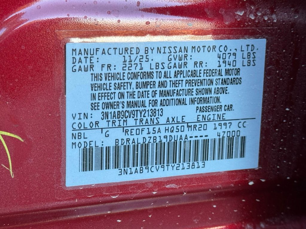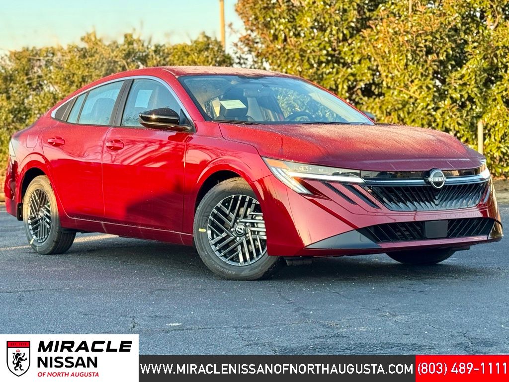 Floor Mat Package, CVT with Xtronic, Charcoal Cloth, 16" Machined Alloy Wheels, 4 Speakers, 4-Wheel Disc Brakes, ABS brakes, Air Conditioning, Alloy wheels, AM/FM radio: Sirius, Auto High-beam Headlights, Automatic temperature control, Body Colored Splash Guards (4-Piece), Brake assist, Bumpers: body-color, Delay-off headlights, Driver door bin, Driver vanity mirror, Dual front impact airbags, Dual front side impact airbags, Electronic Stability Control, Four wheel independent suspension, Front anti-roll bar, Front Bucket Seats, Front Center Armrest, Front reading lights, Fully automatic headlights, Illuminated entry, Knee airbag, Low tire pressure warning, Occupant sensing airbag, Outside temperature display, Overhead airbag, Overhead console, Panic alarm, Passenger door bin, Passenger vanity mirror, Power Delivery Charging Ports, Power door mirrors, Power steering, Power windows, Premium Cloth Seat Trim, Premium Paint, Radio data system, Radio: AM/FM with RDS/MP3, Rear anti-roll bar, Rear side impact airbag, Rear window defroster, Remote keyless entry, Security system, Speed control, Speed-sensing steering, Split folding rear seat, Steering wheel mounted audio controls, Tachometer, Telescoping steering wheel, Tilt steering wheel, Traction control, Trip computer, Variably intermittent wipers, and Wireless Apple CarPlay/Wireless Android Auto. Price includes all rebates: $500 - Nissan Customer Cash. Exp. 05/04/2026 $500 - Nissan SER MY26 Sentra (SL SV and SR Trim) Customer Cash - April. Exp. 05/04/2026
