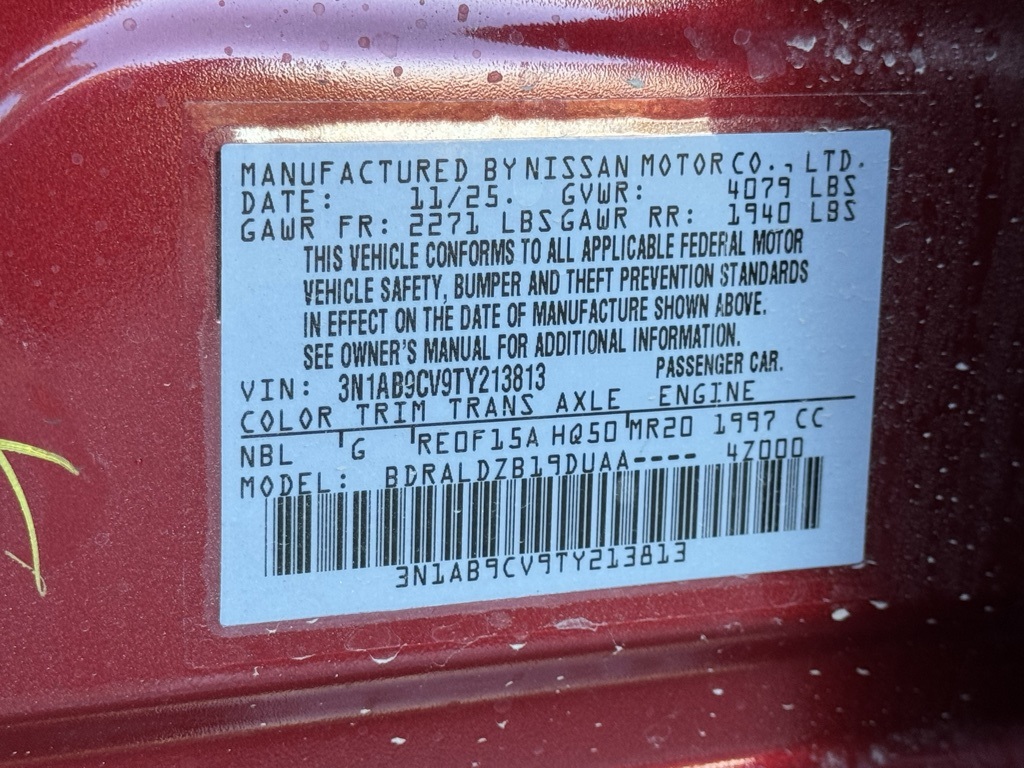 Floor Mat Package, CVT with Xtronic, Charcoal Cloth, 16" Machined Alloy Wheels, 4 Speakers, 4-Wheel Disc Brakes, ABS brakes, Air Conditioning, Alloy wheels, AM/FM radio: Sirius, Auto High-beam Headlights, Automatic temperature control, Body Colored Splash Guards (4-Piece), Brake assist, Bumpers: body-color, Delay-off headlights, Driver door bin, Driver vanity mirror, Dual front impact airbags, Dual front side impact airbags, Electronic Stability Control, Four wheel independent suspension, Front anti-roll bar, Front Bucket Seats, Front Center Armrest, Front reading lights, Fully automatic headlights, Illuminated entry, Knee airbag, Low tire pressure warning, Occupant sensing airbag, Outside temperature display, Overhead airbag, Overhead console, Panic alarm, Passenger door bin, Passenger vanity mirror, Power Delivery Charging Ports, Power door mirrors, Power steering, Power windows, Premium Cloth Seat Trim, Premium Paint, Radio data system, Radio: AM/FM with RDS/MP3, Rear anti-roll bar, Rear side impact airbag, Rear window defroster, Remote keyless entry, Security system, Speed control, Speed-sensing steering, Split folding rear seat, Steering wheel mounted audio controls, Tachometer, Telescoping steering wheel, Tilt steering wheel, Traction control, Trip computer, Variably intermittent wipers, and Wireless Apple CarPlay/Wireless Android Auto. Price includes all rebates: $500 - Nissan MY26 Sentra Customer Cash (All Markets) - February. Exp. 03/02/2026
