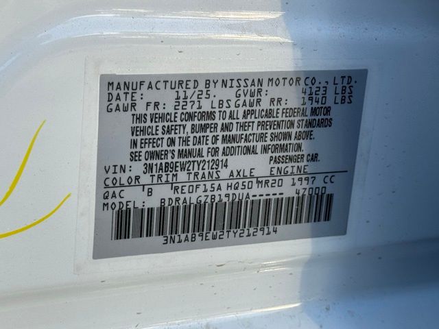Floor Mat Package, 17" Machined Alloy Wheels, 4-Wheel Disc Brakes, 8 Speakers, ABS brakes, Air Conditioning, Alloy wheels, AM/FM radio: Sirius, Auto High-beam Headlights, Auto-dimming Rear-View mirror, Automatic temperature control, Body Colored Splash Guards (4-Piece), Brake assist, Bumpers: body-color, Delay-off headlights, Driver door bin, Driver vanity mirror, Dual front impact airbags, Dual front side impact airbags, Electronic Stability Control, Emergency communication system: NissanConnect Services, Four wheel independent suspension, Front anti-roll bar, Front Bucket Seats, Front Center Armrest, Front dual zone A/C, Front reading lights, Fully automatic headlights, Garage door transmitter, Heated door mirrors, Heated Front Bucket Seats, Heated front seats, Heated steering wheel, Illuminated entry, Knee airbag, Leather steering wheel, Low tire pressure warning, Occupant sensing airbag, Outside temperature display, Overhead airbag, Overhead console, Panic alarm, Passenger door bin, Passenger vanity mirror, Power Delivery Charging Ports, Power door mirrors, Power driver seat, Power moonroof, Power steering, Power windows, Premium Paint, Quilted TailorFit Synthetic Leather Seat Trim, Radio data system, Radio: AM/FM with RDS/MP3, Rear anti-roll bar, Rear seat center armrest, Rear side impact airbag, Rear window defroster, Remote keyless entry, Security system, Speed control, Speed-sensing steering, Split folding rear seat, Steering wheel mounted audio controls, Tachometer, Telescoping steering wheel, Tilt steering wheel, Traction control, Trip computer, Turn signal indicator mirrors, Variably intermittent wipers, and Wireless Apple CarPlay/Wireless Android Auto. Price includes: $500 - Nissan Customer Cash. Exp. 05/04/2026 $500 - Nissan SER MY26 Sentra (SL SV and SR Trim) Customer Cash - April. Exp. 05/04/2026 Price includes dealer added accessories.