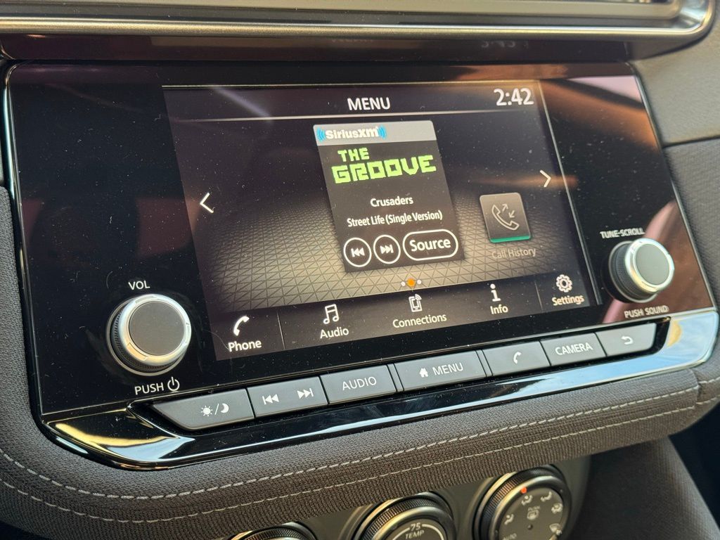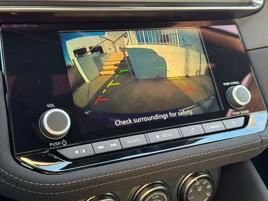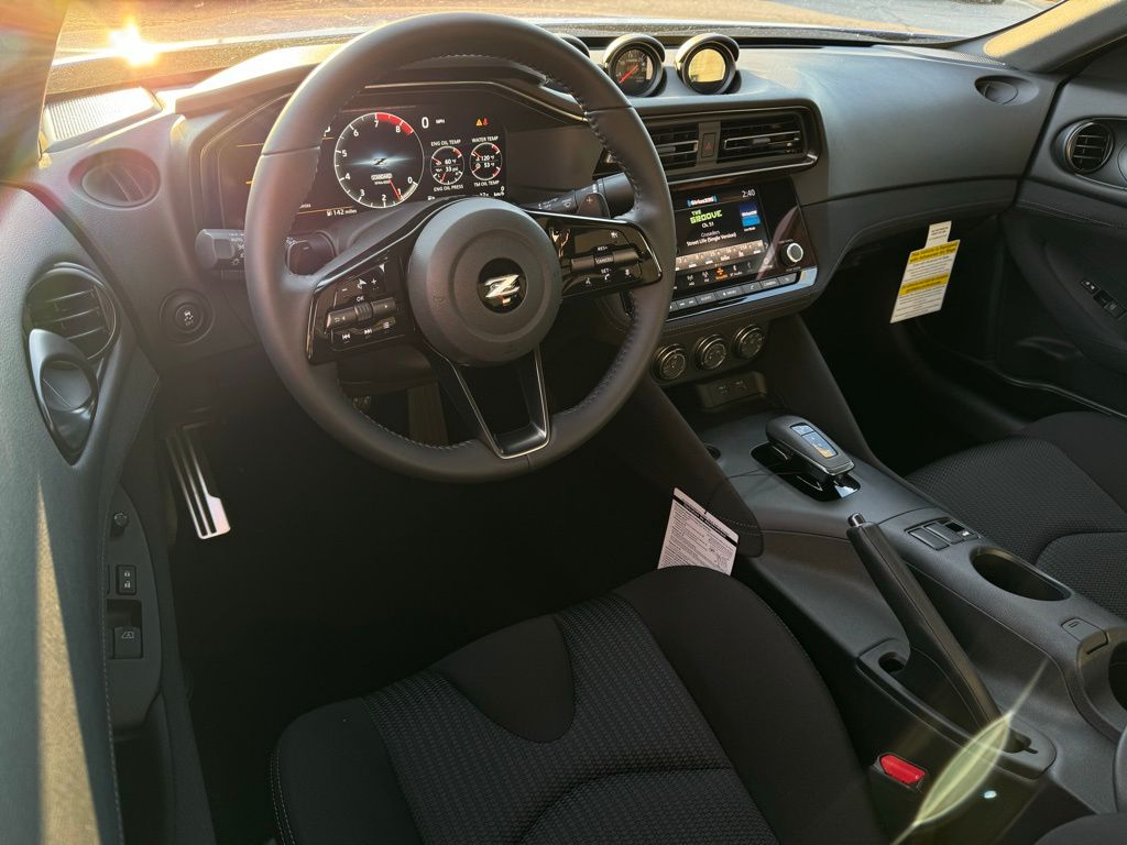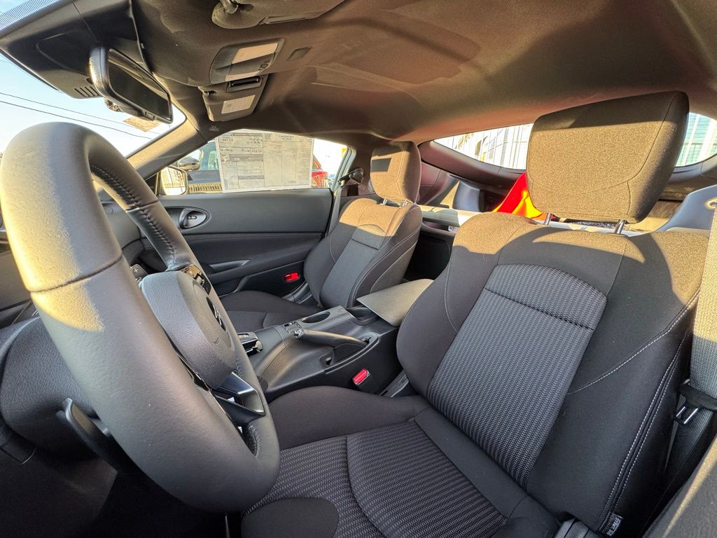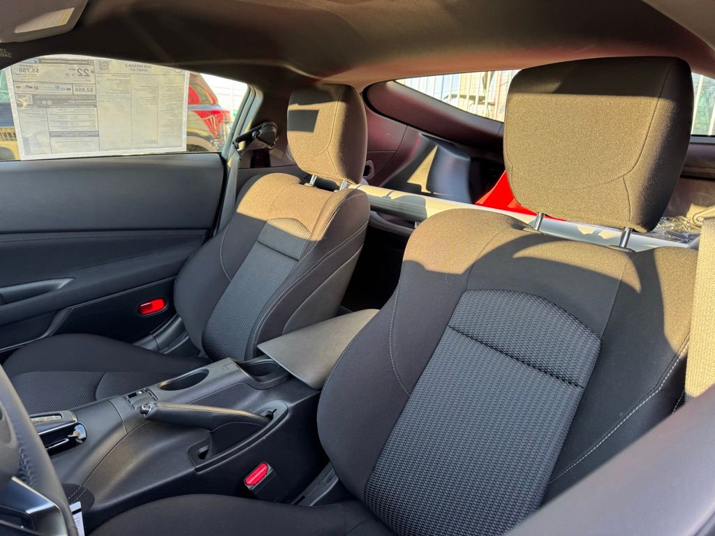 Floor Mat Package (First Aid Kit), 4-Wheel Disc Brakes, 6 Speakers, ABS brakes, Air Conditioning, Alloy wheels, AM/FM radio: SiriusXM, Anti-whiplash front head restraints, Apple CarPlay/Android Auto, Auto High-beam Headlights, Auto-dimming Rear-View mirror, Automatic temperature control, Blind Spot Warning, Brake assist, Bumpers: body-color, Delay-off headlights, Driver door bin, Driver vanity mirror, Dual front impact airbags, Dual front side impact airbags, Electronic Stability Control, Four wheel independent suspension, Front anti-roll bar, Front Bucket Seats, Front Center Armrest, Front reading lights, Fully automatic headlights, Illuminated Kick Plate - Brushed Metallic, Interior Door Scuff Protection, Leather Shift Knob, Leather steering wheel, Low tire pressure warning, Occupant sensing airbag, Outside temperature display, Overhead airbag, Panic alarm, Passenger door bin, Passenger vanity mirror, Power door mirrors, Power steering, Power windows, Premium Paint, Radio data system, Radio: Nissan Audio System with 6 Speakers, Rear anti-roll bar, Rear window defroster, Remote keyless entry, Security system, Speed control, Speed-sensing steering, Steering wheel mounted audio controls, Tachometer, Telescoping steering wheel, Tilt steering wheel, Traction control, Trip computer, Turn signal indicator mirrors, Variably intermittent wipers, Voltmeter, Wheels: 18" x 9" Styled Alloy, Woven Cloth Seat Trim, and Z Center Caps.