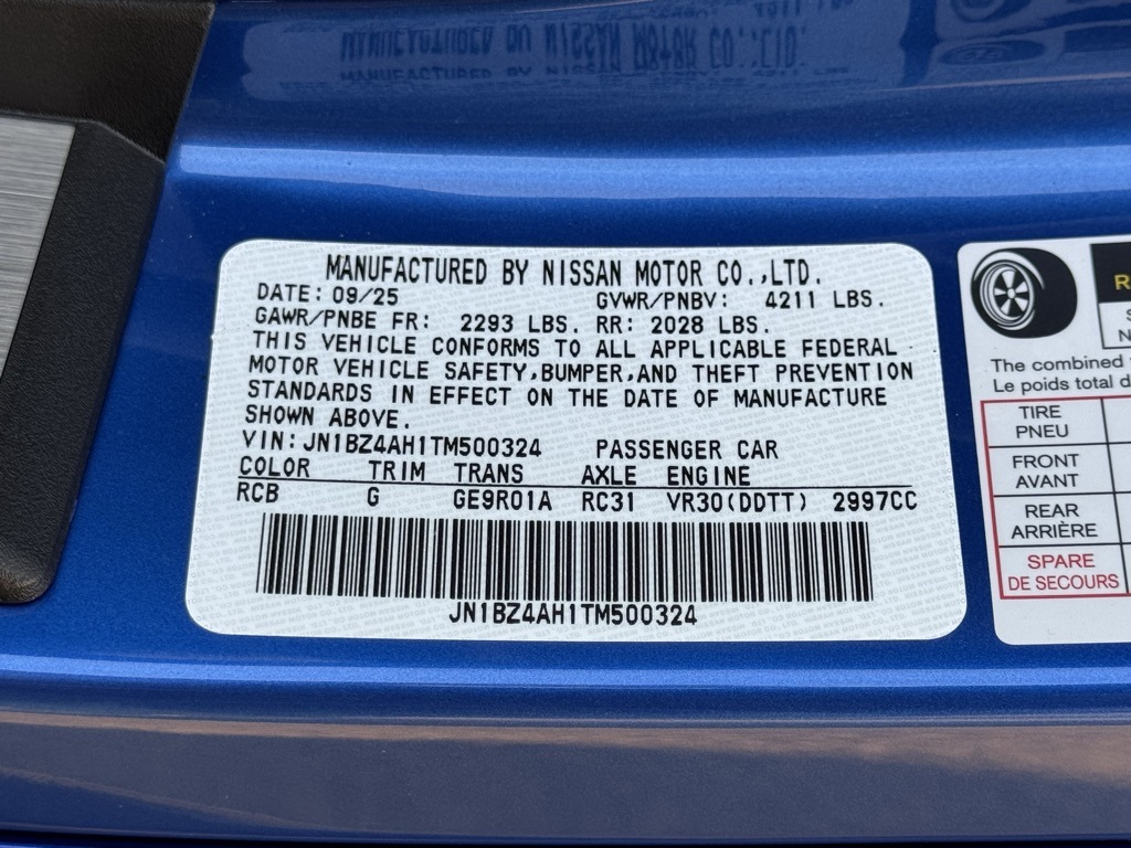 Bayside Blue Quad Coat 2026 Nissan Z Sport RWD 9-Speed Automatic 3.0L V6