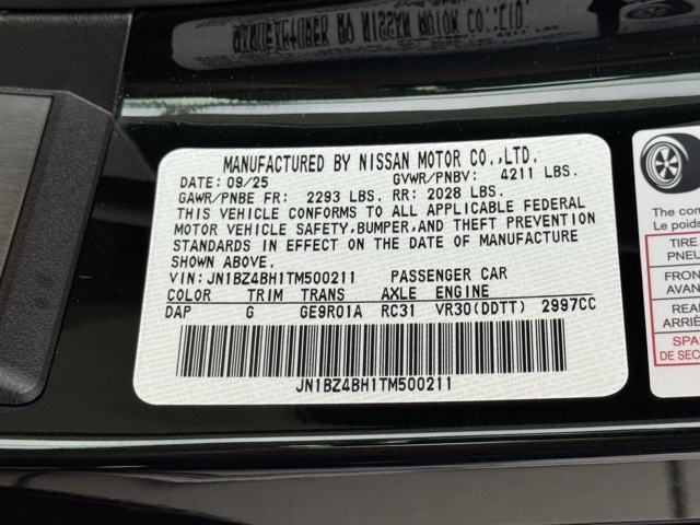 4-Wheel Disc Brakes, 8 Speakers, ABS brakes, Air Conditioning, Alloy wheels, AM/FM radio: SiriusXM, Auto High-beam Headlights, Auto-dimming Rear-View mirror, Automatic temperature control, Blind Spot Warning, Brake assist, Bumpers: body-color, Compass, Delay-off headlights, Driver door bin, Driver vanity mirror, Dual front impact airbags, Dual front side impact airbags, Electronic Stability Control, Emergency communication system: NissanConnect Services, Exclusive Heritage Edition Floor Mats, Exclusive Illuminated Kick Plates, Exterior Vinyl Graphics, Four wheel independent suspension, Front anti-roll bar, Front Bucket Seats, Front Center Armrest, Front reading lights, Fully automatic headlights, Garage door transmitter, Heated door mirrors, Heated Front Bucket Seats, Heated front seats, Interior Door Scuff Protection, Leather Shift Knob, Leather steering wheel, Leather-Appointed Seat Trim, Low tire pressure warning, Navigation system: NissanConnect with Navigation and Services, Occupant sensing airbag, Outside temperature display, Overhead airbag, Panic alarm, Passenger door bin, Passenger vanity mirror, Power door mirrors, Power driver seat, Power passenger seat, Power steering, Power windows, Radio data system, Rear anti-roll bar, Rear window defroster, Remote keyless entry, Security system, Speed control, Speed-sensing steering, Spoiler, Steering wheel mounted audio controls, Tachometer, Telescoping steering wheel, Tilt steering wheel, Traction control, Trip computer, Turn signal indicator mirrors, Variably intermittent wipers, Voltmeter, Wheels: 19" RAYS Bronzed Forged Aluminum Alloy, and Z Center Caps. Price includes: $1500 - Nissan Customer Cash. Exp. 03/02/2026 Price includes dealer added accessories.