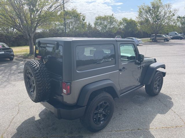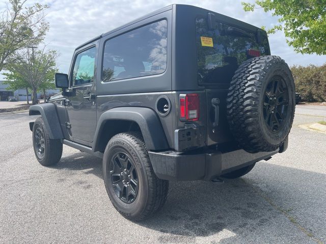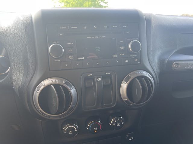 1-Yr SiriusXM Radio Service, 3.73 Rear Axle Ratio, 4-Wheel Disc Brakes, 4-Wheel Drive Swing Gate Decal, 8 Speakers, ABS brakes, Air Conditioning, Alpine 9-Speaker w/All Weather Subwoofer, AM/FM radio, Anti-Spin Differential Rear Axle, Audio Jack Input for Mobile Devices, Auto-Dimming Mirror w/Reading Lamp, BF Goodrich Brand Tires, Black 3-Piece Hard Top, Black Jeep Grille Badge, Body Color 3-Piece Hard Top, Brake assist, CD player, Cloth Seats w/Adjustable Head Restraints, Compass, Connectivity Group, Deep Tint Sunscreen Windows, Delete Sunrider Soft Top, Driver door bin, Driver Height Adjuster Seat, Driver vanity mirror, Dual front impact airbags, Electronic Stability Control, Freedom Panel Storage Bag, Front 1-Touch Down Power Windows, Front anti-roll bar, Front Bucket Seats, Front Center Armrest w/Storage, Front fog lights, Integrated roll-over protection, Jeep Trail Rated Kit, LED Fog Lamps, LED Lighting Group, LED Reflector Headlamps, Low Gloss Wrangler JK Decal, Low tire pressure warning, MOPAR Slush Mats, Occupant sensing airbag, Outside temperature display, Passenger door bin, Passenger vanity mirror, Performance Suspension, Power Convenience Group, Power Heated Mirrors, Power Locks, Power steering, Quick Order Package 24W Willys Wheeler W, R1234YF A/C Refrigerant, Radio: 130, Rear anti-roll bar, Rear Passenger Assist Handles Kit, Rear Window Defroster, Rear Window Wiper/Washer, Remote Keyless Entry, Security Alarm, Speed control, Steering wheel mounted audio controls, Tachometer, Tilt steering wheel, Tire Pressure Monitoring Display, Traction control, Trip computer, Uconnect Voice Command w/Bluetooth, Vehicle Information Center, Wheels: 17" x 7.5" High Gloss Black Willys, Willys Hood Decal, Willys Wheeler Grille, Willys Wheeler Package.
