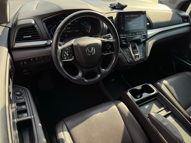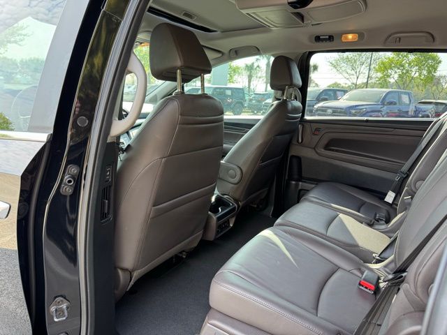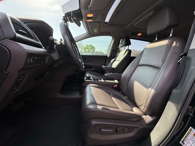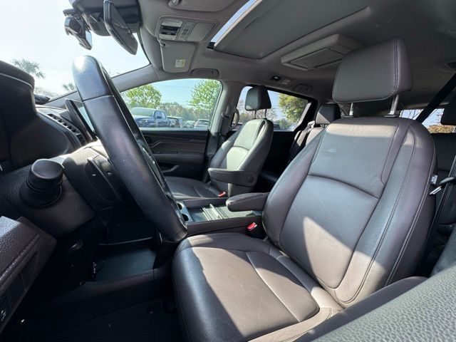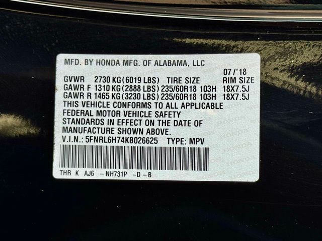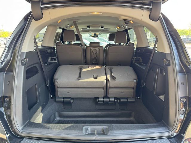 3rd row seats: split-bench, 4-Wheel Disc Brakes, 7 Speakers, A/V remote: CabinControl, ABS brakes, Air Conditioning, AM/FM radio: SiriusXM, Anti-whiplash front head restraints, Apple CarPlay/Android Auto, Auto High-beam Headlights, Auto-dimming Rear-View mirror, Automatic temperature control, Blind Spot Information (BSI) System warning, Brake assist, Bumpers: body-color, Delay-off headlights, Driver door bin, Driver vanity mirror, Driver's Seat Mounted Armrest, Dual front impact airbags, Dual front side impact airbags, Electronic Stability Control, Emergency communication system: HondaLink, Exterior Parking Camera Rear, Forward collision: Collision Mitigation Braking System (CMBS) + FCW mitigation, Four wheel independent suspension, Front anti-roll bar, Front Bucket Seats, Front dual zone A/C, Front fog lights, Front reading lights, Fully automatic headlights, Garage door transmitter: HomeLink, Heated door mirrors, Heated Front Bucket Seats, Heated front seats, Illuminated entry, Knee airbag, Lane departure: Lane Keeping Assist System (LKAS) active, Leather Seat Trim, Leather steering wheel, Low tire pressure warning, Memory seat, Navigation System, Occupant sensing airbag, Outside temperature display, Overhead airbag, Overhead console, Panic alarm, Passenger door bin, Passenger seat mounted armrest, Passenger vanity mirror, Power door mirrors, Power driver seat, Power Liftgate, Power moonroof, Power passenger seat, Power steering, Power windows, Radio data system, Radio: 160-Watt AM/FM/HD/SiriusXM Audio System, Rear air conditioning, Rear anti-roll bar, Rear reading lights, Rear seat center armrest, Rear window defroster, Rear window wiper, Reclining 3rd row seat, Remote keyless entry, Security system, Speed control, Speed-sensing steering, Speed-Sensitive Wipers, Split folding rear seat, Spoiler, Steering wheel mounted audio controls, Tachometer, Telescoping steering wheel, Tilt steering wheel, Traction control, Trip computer, Turn signal indicator mirrors, Variably intermittent wipers, Wheels: 18" Dark Silver-Painted Alloy.