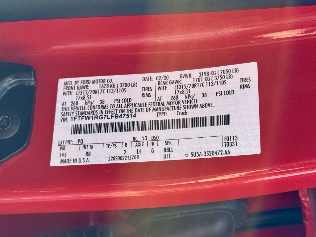 4WD. CARFAX One-Owner. Clean CARFAX. Race Red 2020 Ford F-150 Raptor 4WD This Vehicle qualifies for Complimentary 7 Year 250,000 Mile Limited Power Train. Huge Value! See Dealer for Details.