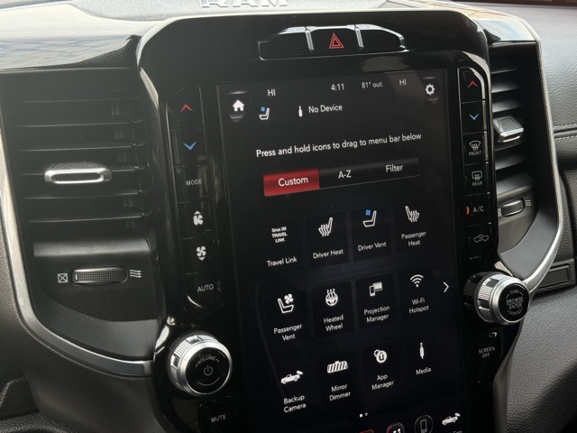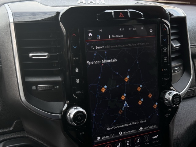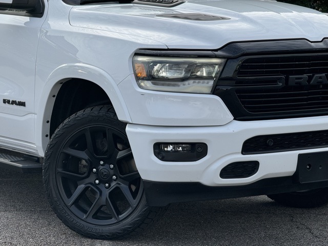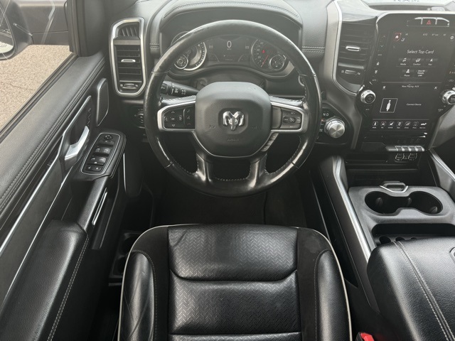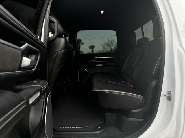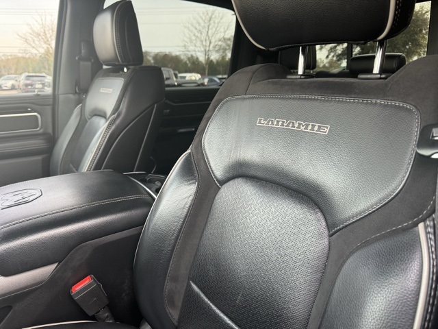 #1 Seat Foam Cushion, 1-Yr SiriusXM Guardian Trial, 10 Speakers, 12" Touchscreen Display, 3 Rear Seat Head Restraints, 4 Adjustable Cargo Tie-Down Hooks, 4 Way Front Headrests, 4-Wheel Disc Brakes, 4G LTE Wi-Fi Hot Spot, 5-Year SiriusXM Traffic Service, 5-Year SiriusXM Travel Link Service, 8.4" Touchscreen Display, ABS brakes, Adjustable pedals, Air Conditioning, AM/FM radio: SiriusXM, Anti-Spin Differential Rear Axle, Apple CarPlay, Apple CarPlay/Android Auto, Audio memory, Auto High Beam Headlamp Control, Auto-dimming door mirrors, Auto-dimming Rear-View mirror, Automatic temperature control, Bed Utility Group, Black Exterior Truck Badging, Black Headlamp Bezels, Black Interior Accents, Black Tubular Side Steps, Black Tubular Side Steps (DISC), Blind Spot & Cross Path Detection, Body Color Door Handles, Body Color Exterior Mirrors, Body Color Front Bumper, Body Color Premium Power Mirrors, Body Color Rear Bumper w/Step Pads, Brake assist, Bucket Seats, Bumpers: chrome, Compass, Delay-off headlights, Deployable Bed Step, Disassociated Touchscreen Display, Driver door bin, Driver Seat Memory, Driver vanity mirror, Dual Exhaust w/Black Tips, Dual front impact airbags, Dual front side impact airbags, Electronic Stability Control, Foam Bottle Insert (Door Trim Panel), For Details, Visit DriveUconnect.com, Front anti-roll bar, Front Center Armrest w/Storage, Front dual zone A/C, Front fog lights, Front reading lights, Front Seat Back Map Pockets, Front wheel independent suspension, Full Length Upgraded Floor Console, Fully automatic headlights, Garage door transmitter, Google Android Auto, GPS Antenna Input, GPS Navigation, Grille Surround 3 Black Texture 2 Black, harman/kardon 19 Speaker Premium Sound, HD Radio, Heated door mirrors, Heated Front Seats, Heated front seats, Heated Second Row Seats, Heated Steering Wheel, Heated steering wheel, Illuminated entry, Integrated Center Stack Radio, Laramie Level 2 Equipment Group, Leather steering wheel, Leather Trim 40/20/40 Bench Seat, Leather Trimmed Bucket Seats, Low tire pressure warning, Memory seat, Multi-Function Tailgate, Night Edition, Occupant sensing airbag, Outside temperature display, Overhead airbag, Overhead console, Panic alarm, ParkSense Front/Rear Park Assist w/Stop, ParkSense Front/Rear Park Assist w/Stop (DISC), ParkView Rear Back-Up Camera, Passenger door bin, Passenger vanity mirror, Pedal memory, Pick-Up Box Lighting, Power 4-Way Driver Lumbar Adjust, Power 4-Way Passenger Lumbar Adjust, Power 8-Way Driver & Passenger Seats, Power door mirrors, Power driver seat, Power passenger seat, Power steering, Power windows, Quick Order Package 27H Laramie, Radio data system, Radio: Uconnect 12 w/Navigation, Radio: Uconnect 4 w/8.4" Display, Radio: Uconnect 4C Nav w/8.4" Display, Rain Sensitive Windshield Wipers, RamBox Cargo Management System, Rear 60/40 Folding Split Recline Seat, Rear anti-roll bar, Rear seat center armrest, Rear step bumper, Rear Underseat Compartment Storage, Rear window defroster, Remote keyless entry, Remote Tailgate Release, Security system, SiriusXM Satellite Radio, SiriusXM Traffic Plus, SiriusXM Travel Link, SiriusXM w/360L, Speed control, Split folding rear seat, Sport Performance Hood, Spray In Bedliner, Steering wheel mounted audio controls, Tachometer, Tailgate Ajar Warning Lamp, Telescoping steering wheel, Tilt steering wheel, Traction control, Trip computer, Turn signal indicator mirrors, USB Host Flip, Variably intermittent wipers, Ventilated Front Seats, Ventilated front seats, Voltmeter, Wheels: 20" x 9" Cast Aluminum Black.