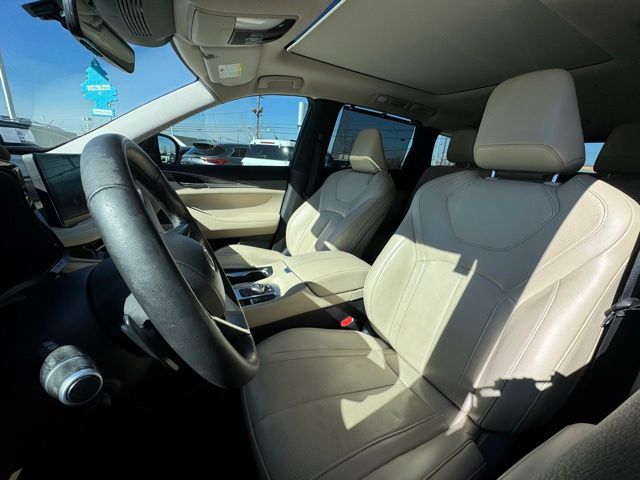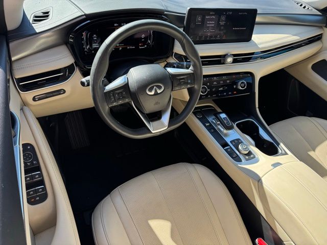 Certification Program Details: This Vehicle qualifies for Complimentary 7 year 250,000 Mile Limited Power Train Warranty. Huge Value. Vehicle age max 8yrs / under 85k miles. See Dealer for Details. Cargo Package (Cargo Mat (Reversible) and First Aid Kit), 3rd row seats: bench, 4-Wheel Disc Brakes, 4.334 Axle Ratio, 9 Speakers, ABS brakes, Air Conditioning, Alloy wheels, AM/FM radio: SiriusXM, Anti-whiplash front head restraints, Auto High-beam Headlights, Auto-dimming door mirrors, Auto-dimming Rear-View mirror, Automatic temperature control, Brake assist, Bumpers: body-color, Climate-Controlled Front Bucket Seats, Delay-off headlights, Driver door bin, Driver vanity mirror, Dual front impact airbags, Dual front side impact airbags, Electronic Stability Control, Emergency communication system, Floor Mats on Bench Seats w/3rd Row Tray, Four wheel independent suspension, Front anti-roll bar, Front Bucket Seats, Front Center Armrest, Front dual zone A/C, Front reading lights, Fully automatic headlights, Garage door transmitter: HomeLink, Heated door mirrors, Heated front seats, Heated steering wheel, Illuminated entry, Knee airbag, Leather Shift Knob, Leather steering wheel, Leather-Appointed Seating Surfaces, Literature Kit, Low tire pressure warning, Memory seat, Navigation system: INFINITI InTouch Navigation, Occupant sensing airbag, Outside temperature display, Overhead airbag, Overhead console, Panic alarm, Passenger door bin, Passenger vanity mirror, Power door mirrors, Power driver seat, Power Liftgate, Power moonroof, Power passenger seat, Power steering, Power windows, Radio data system, Radio: AM/FM Audio System, Rain sensing wipers, Rear air conditioning, Rear anti-roll bar, Rear reading lights, Rear seat center armrest, Rear side impact airbag, Rear window defroster, Rear window wiper, Reclining 3rd row seat, Remote keyless entry, Security system, Speed control, Speed-sensing steering, Speed-Sensitive Wipers, Splash Guards, Split folding rear seat, Spoiler, Steering wheel memory, Steering wheel mounted audio controls, Tachometer, Telescoping steering wheel, Tilt steering wheel, Traction control, Trip computer, Turn signal indicator mirrors, Variably intermittent wipers, Ventilated front seats, and Wheels: 20" x 8J Sporty Machined Aluminum Alloy.