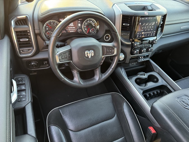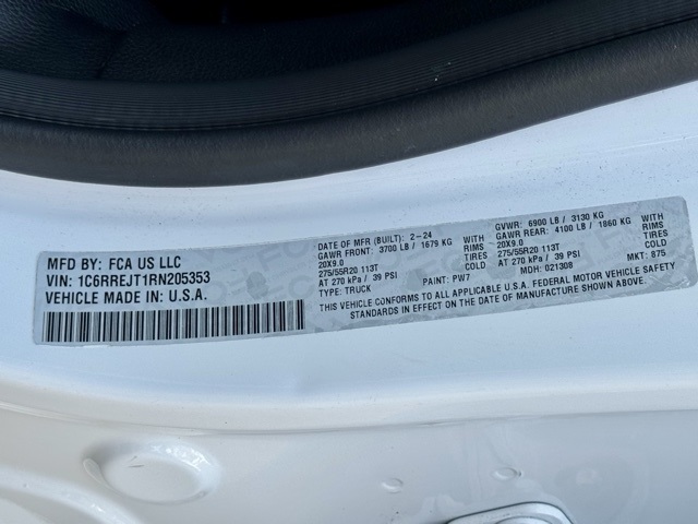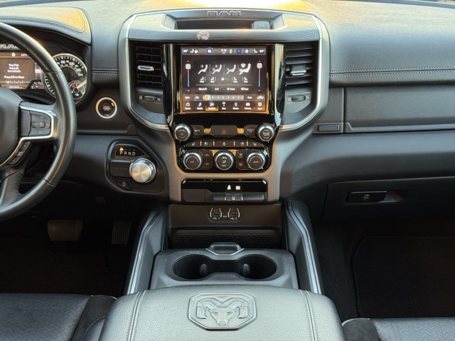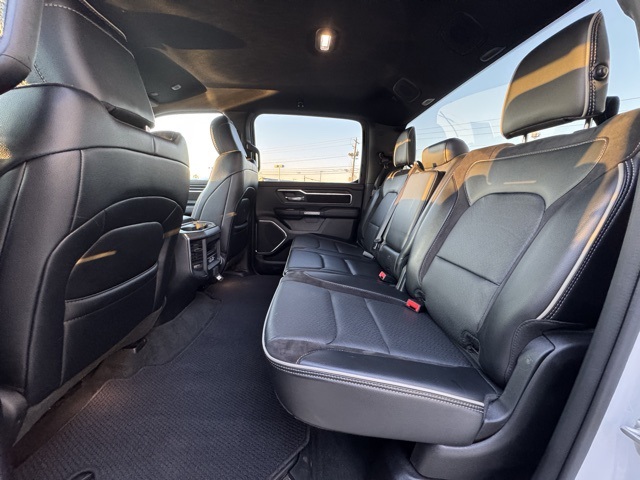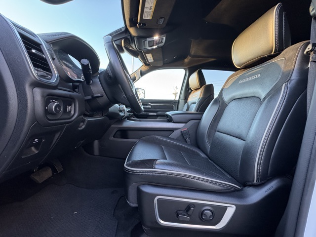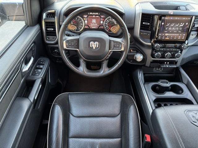 Certification Program Details: This Vehicle qualifies for Complimentary 7 year 250,000 Mile Limited Power Train Warranty. Huge Value. Vehicle age max 8yrs / under 85k miles. See Dealer for Details. 10 Speakers, 3 Rear Seat Head Restraints, 3.21 Rear Axle Ratio, 4 Way Front Headrests, 4-Wheel Disc Brakes, 48V Belt Starter Generator, 4G LTE Wi-Fi Hot Spot, ABS brakes, Air Conditioning, Alloy wheels, AM/FM radio: SiriusXM with 360L, Apple CarPlay, Apple CarPlay/Android Auto, Audio memory, Auto-dimming door mirrors, Auto-Dimming Exterior Driver Mirror, Auto-dimming Rear-View mirror, Automatic temperature control, Brake assist, Bumpers: chrome, Chrome Exterior Mirrors, Compass, Connected Travel & Traffic Services, Connectivity - US/Canada, Convex Wide-Angle Exterior Mirror Insert, Delay-off headlights, Driver door bin, Driver Seat Memory, Driver vanity mirror, Dual front impact airbags, Dual front side impact airbags, Electronic Stability Control, Exterior Mirrors Courtesy Lamps, Exterior Mirrors w/Heating Element, Exterior Mirrors w/Memory, Exterior Mirrors w/Supplemental Signals, Exterior Parking Camera Rear, For Details, Visit DriveUconnect.com, For More Info, Call 800-643-2112, Front anti-roll bar, Front Center Armrest w/Storage, Front dual zone A/C, Front fog lights, Front reading lights, Front Seat Back Map Pockets, Front wheel independent suspension, Fully automatic headlights, Garage door transmitter, Global Telematics Box Module (TBM), Google Android Auto, GPS Navigation, HD Radio, Heated door mirrors, Heated Front Seats, Heated front seats, Heated Steering Wheel, Heated steering wheel, Illuminated entry, Integrated Voice Command w/Bluetooth, Leather steering wheel, Leather Trim 40/20/40 Bench Seat, Low tire pressure warning, Memory seat, Navigation System, Occupant sensing airbag, Outside temperature display, Overhead airbag, Overhead console, Panic alarm, Passenger door bin, Passenger vanity mirror, Power 2-Way Driver Lumbar Adjust, Power 2-Way Passenger Lumbar Adjust, Power 8-Way Driver & Passenger Seats, Power door mirrors, Power driver seat, Power passenger seat, Power steering, Power windows, Power-Folding Mirrors, Radio data system, Radio: Uconnect 5 Nav w/8.4" Display, RAM Grille Badge - Chrome, Rear 60/40 Folding Seat, Rear anti-roll bar, Rear seat center armrest, Rear step bumper, Remote keyless entry, Security system, SiriusXM Radio Service, SiriusXM w/360L, Speed control, Split folding rear seat, Steering wheel mounted audio controls, Tachometer, Telescoping steering wheel, Tilt steering wheel, Traction control, Trip computer, Turn signal indicator mirrors, Variably intermittent wipers, Ventilated Front Seats, Ventilated front seats, Voltmeter, and Wheels: 18" x 8" Aluminum Base PainteD.