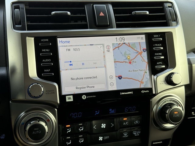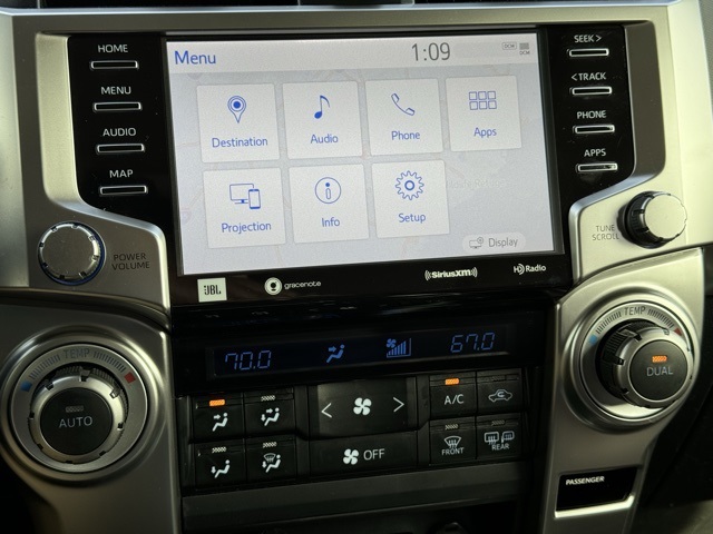 15 Speakers, 4-Wheel Disc Brakes, ABS brakes, Air Conditioning, Alloy wheels, AM/FM radio: SiriusXM, Anti-whiplash front head restraints, Apple CarPlay/Android Auto, Auto High-beam Headlights, Auto-dimming Rear-View mirror, Automatic temperature control, Brake assist, Bumpers: body-color, Compass, Delay-off headlights, Driver door bin, Driver vanity mirror, Dual front impact airbags, Dual front side impact airbags, Dual Zone Auto Climate Control, Electronic Stability Control, Emergency communication system: Safety Connect (1-year trial), Exterior Parking Camera Rear, Front anti-roll bar, Front Bucket Seats, Front Center Armrest, Front dual zone A/C, Front fog lights, Front reading lights, Front wheel independent suspension, Fully automatic headlights, Garage Door Opener, Garage door transmitter: HomeLink, Heated & Ventilated Front Bucket Seats, Heated door mirrors, Heated front seats, Heated Outside Rear-View Mirrors, Heated steering wheel, Illuminated entry, Knee airbag, Leather Seat Trim, Low tire pressure warning, Memory seat, Moonroof w/Tilt Up & Slide, Navigation System, Occupant sensing airbag, Outside temperature display, Overhead airbag, Overhead console, Panic alarm, Panoramic Back Monitor, Passenger door bin, Passenger vanity mirror, Power door mirrors, Power driver seat, Power moonroof, Power passenger seat, Power steering, Power windows, Radio: Premium Audio w/JBL, Rear anti-roll bar, Rear seat center armrest, Rear window defroster, Remote keyless entry, Security system, Silver Roof Rails, Speed control, Speed-sensing steering, Split folding rear seat, Spoiler, Steering wheel mounted audio controls, Tachometer, Telescoping steering wheel, Tilt steering wheel, Traction control, Trip computer, Turn signal indicator mirrors, Variably intermittent wipers, Ventilated front seats.
