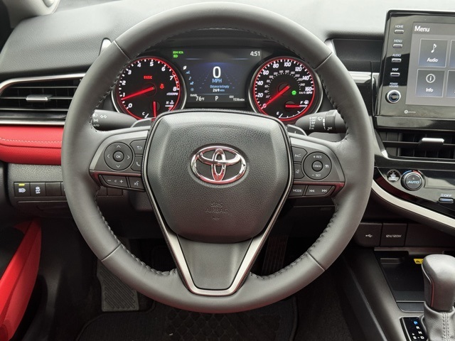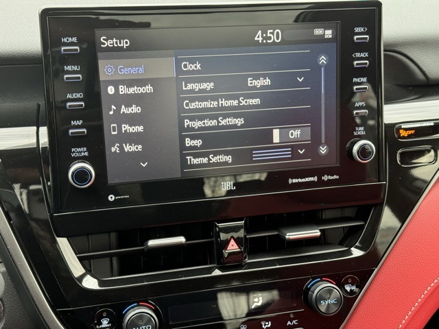 4-Wheel Disc Brakes, 9 Speakers, ABS brakes, Active Cruise Control, Air Conditioning, Alloy wheels, AM/FM radio: SiriusXM, Apple CarPlay/Android Auto, Auto High-beam Headlights, Auto-dimming Rear-View mirror, Automatic temperature control, Brake assist, Compass, Delay-off headlights, Driver door bin, Driver vanity mirror, Dual front impact airbags, Dual front side impact airbags, Electronic Stability Control, Emergency communication system: Safety Connect (1-year trial), Exterior Parking Camera Rear, Four wheel independent suspension, Front anti-roll bar, Front Bucket Seats, Front Center Armrest, Front dual zone A/C, Front reading lights, Fully automatic headlights, Garage door transmitter: HomeLink, Heads-Up Display, Heated door mirrors, Heated front seats, Illuminated entry, Knee airbag, Leather steering wheel, Low tire pressure warning, Multi-Stage Heated Front Bucket Seats, Occupant sensing airbag, Outside temperature display, Overhead airbag, Overhead console, Panic alarm, Passenger door bin, Passenger vanity mirror, Perforated Leather Seat Trim, Power door mirrors, Power driver seat, Power moonroof, Power passenger seat, Power steering, Power windows, Radio data system, Radio: Audio Plus w/JBL, Rear anti-roll bar, Rear seat center armrest, Rear side impact airbag, Rear window defroster, Remote keyless entry, Security system, Speed control, Speed-sensing steering, Split folding rear seat, Spoiler, Steering wheel mounted audio controls, Tachometer, Telescoping steering wheel, Tilt steering wheel, Traction control, Trip computer, Turn signal indicator mirrors, Variably intermittent wipers.