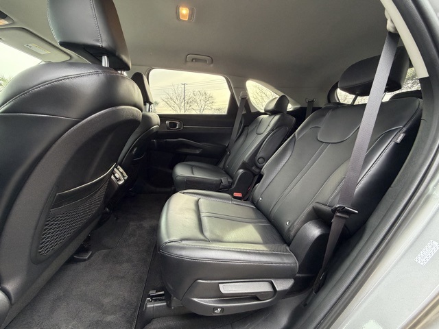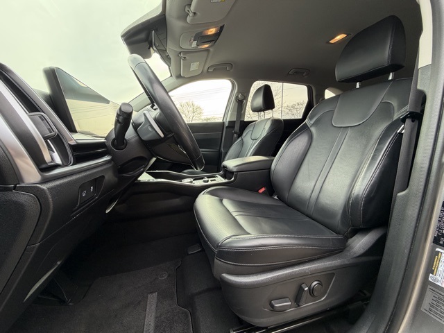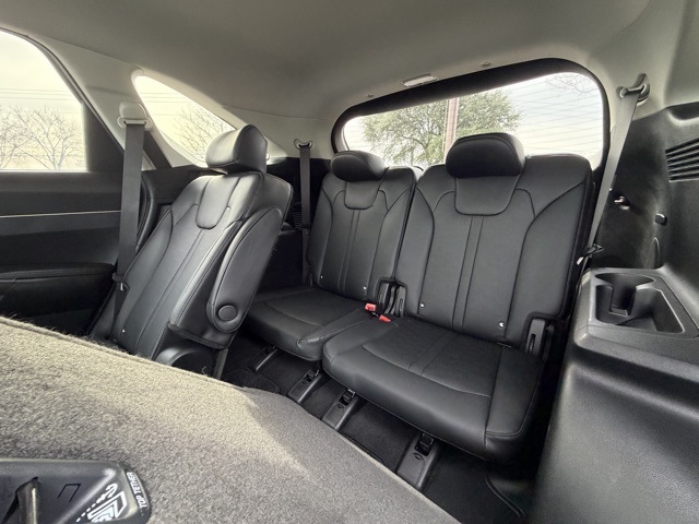 3rd row seats: split-bench, 4-Wheel Disc Brakes, 6 Speakers, ABS brakes, Air Conditioning, Alloy wheels, AM/FM radio: SiriusXM, Apple CarPlay & Android Auto, Auto High-beam Headlights, Automatic temperature control, Brake assist, Bumpers: body-color, Carpeted Cargo Mat w/Seatback Protection, Carpeted Floor Mats, Cross Bars, Delay-off headlights, Driver door bin, Driver vanity mirror, Dual front impact airbags, Dual front side impact airbags, Electronic Stability Control, Emergency communication system: 911 Connect, Exterior Parking Camera Rear, Four wheel independent suspension, Front anti-roll bar, Front Bucket Seats, Front Center Armrest, Front dual zone A/C, Front fog lights, Front reading lights, Fully automatic headlights, Heated door mirrors, Heated Front Bucket Seats, Heated front seats, Illuminated entry, Knee airbag, Leather steering wheel, Low tire pressure warning, Navigation System, Occupant sensing airbag, Outside temperature display, Overhead airbag, Overhead console, Panic alarm, Passenger door bin, Passenger vanity mirror, Power door mirrors, Power driver seat, Power Liftgate, Power passenger seat, Power steering, Power windows, Radio data system, Radio: AM/FM/SiriusXM Audio System, Rear air conditioning, Rear anti-roll bar, Rear reading lights, Rear window defroster, Rear window wiper, Remote keyless entry, Security system, Speed control, Speed-sensing steering, Split folding rear seat, Spoiler, Steering wheel mounted audio controls, SynTex Artificial Leather Seat Trim, Tachometer, Telescoping steering wheel, Tilt steering wheel, Traction control, Trip computer, Turn signal indicator mirrors, Variably intermittent wipers.