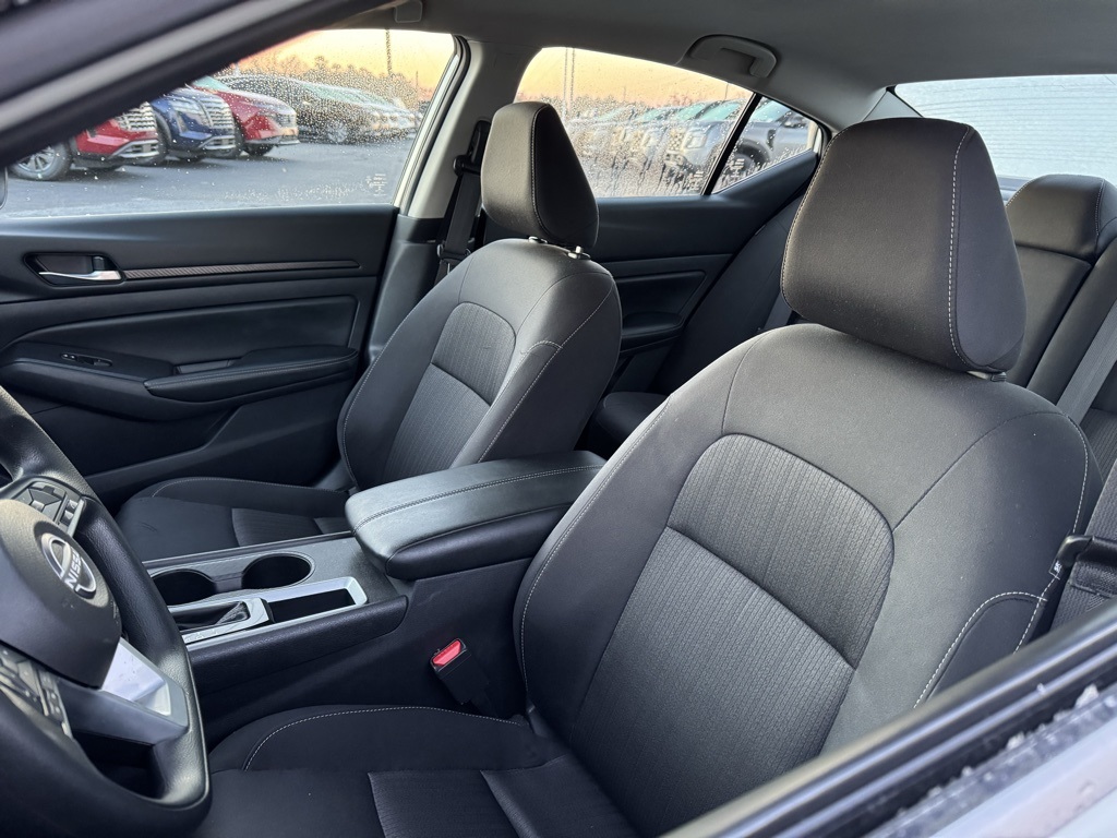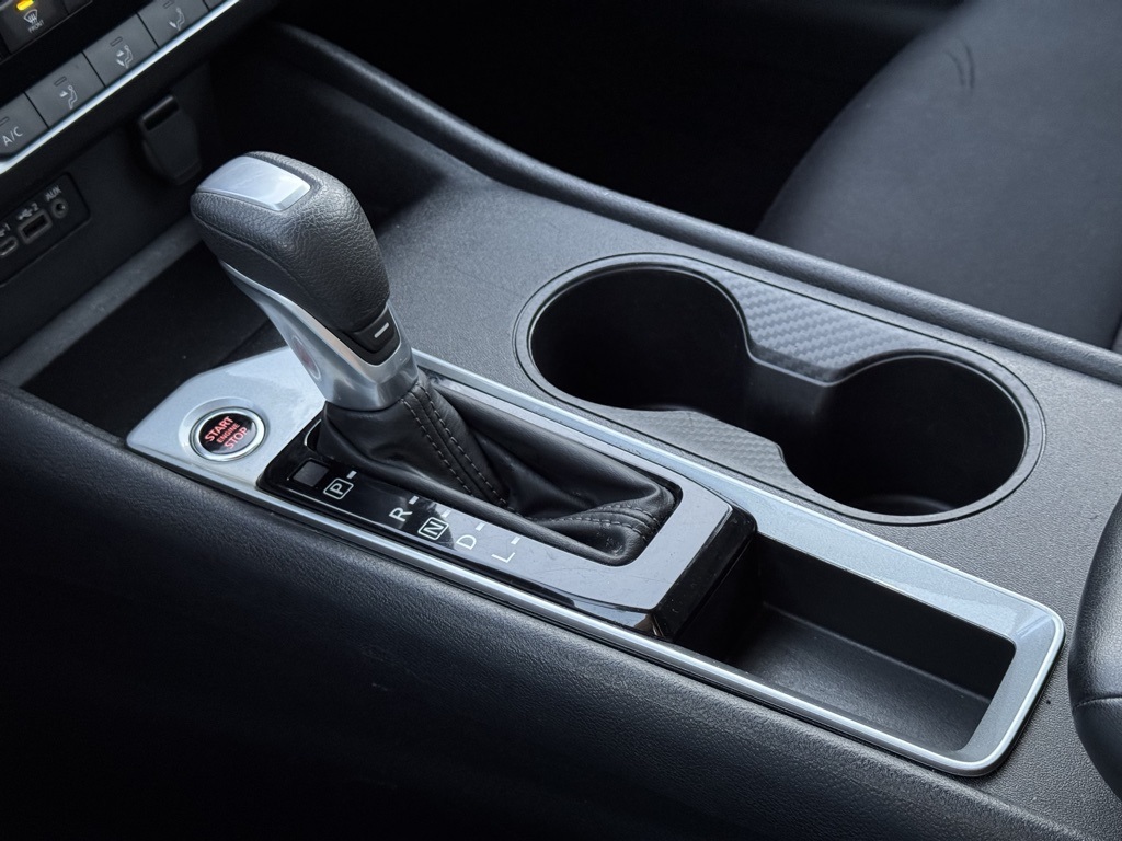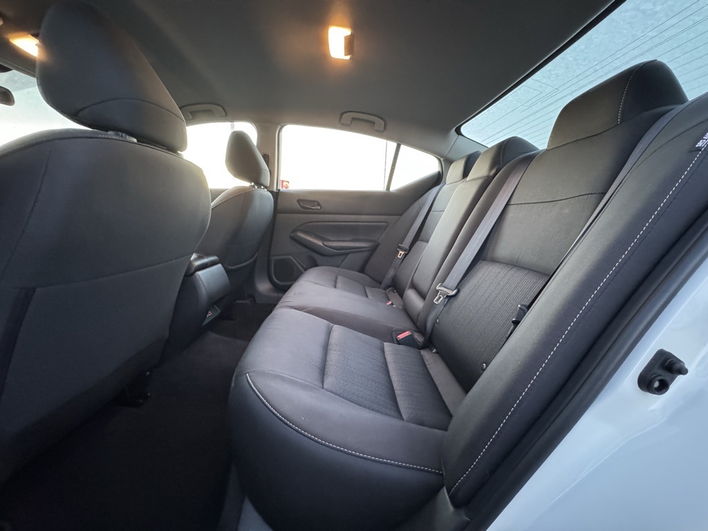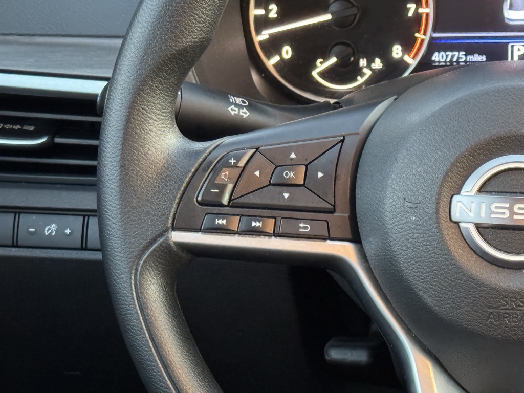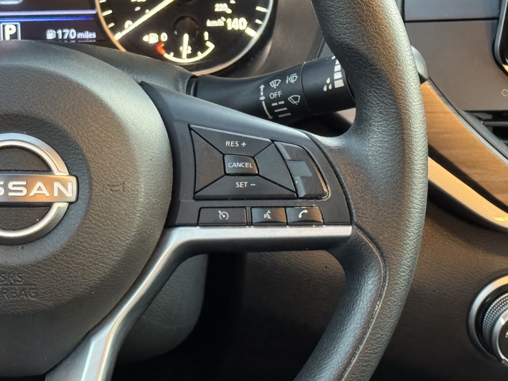 CVT with Xtronic, 17" Machined Alloy Wheels, 4-Wheel Disc Brakes, 6 Speakers, ABS brakes, Air Conditioning, Alloy wheels, AM/FM radio: SiriusXM, Auto High-beam Headlights, Blind Spot Warning, Brake assist, Bumpers: body-color, Cloth Seat Trim, Delay-off headlights, Driver door bin, Driver vanity mirror, Dual front impact airbags, Dual front side impact airbags, Electronic Stability Control, Four wheel independent suspension, Front anti-roll bar, Front Bucket Seats, Front Center Armrest, Front reading lights, Fully automatic headlights, Illuminated entry, Knee airbag, Low tire pressure warning, NissanConnect featuring Apple CarPlay and Android Auto, Occupant sensing airbag, Outside temperature display, Overhead airbag, Overhead console, Panic alarm, Passenger door bin, Passenger vanity mirror, Power door mirrors, Power driver seat, Power steering, Power windows, Radio data system, Radio: AM/FM Audio System, Rear anti-roll bar, Rear Parking Sensors, Rear reading lights, Rear seat center armrest, Rear side impact airbag, Rear window defroster, Remote keyless entry, Security system, Speed control, Speed-sensing steering, Speed-Sensitive Wipers, Split folding rear seat, Steering wheel mounted audio controls, Tachometer, Telescoping steering wheel, Tilt steering wheel, Traction control, Trip computer, and Variably intermittent wipers.