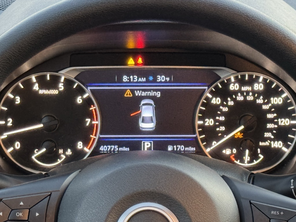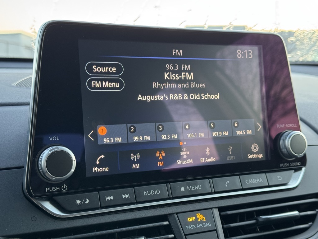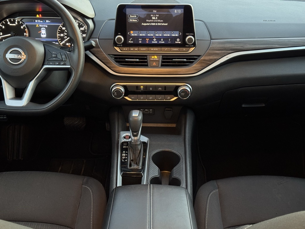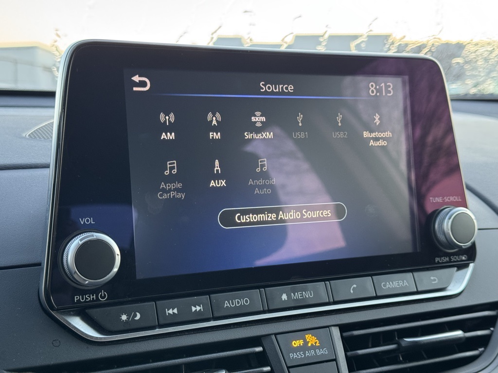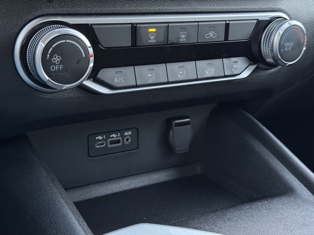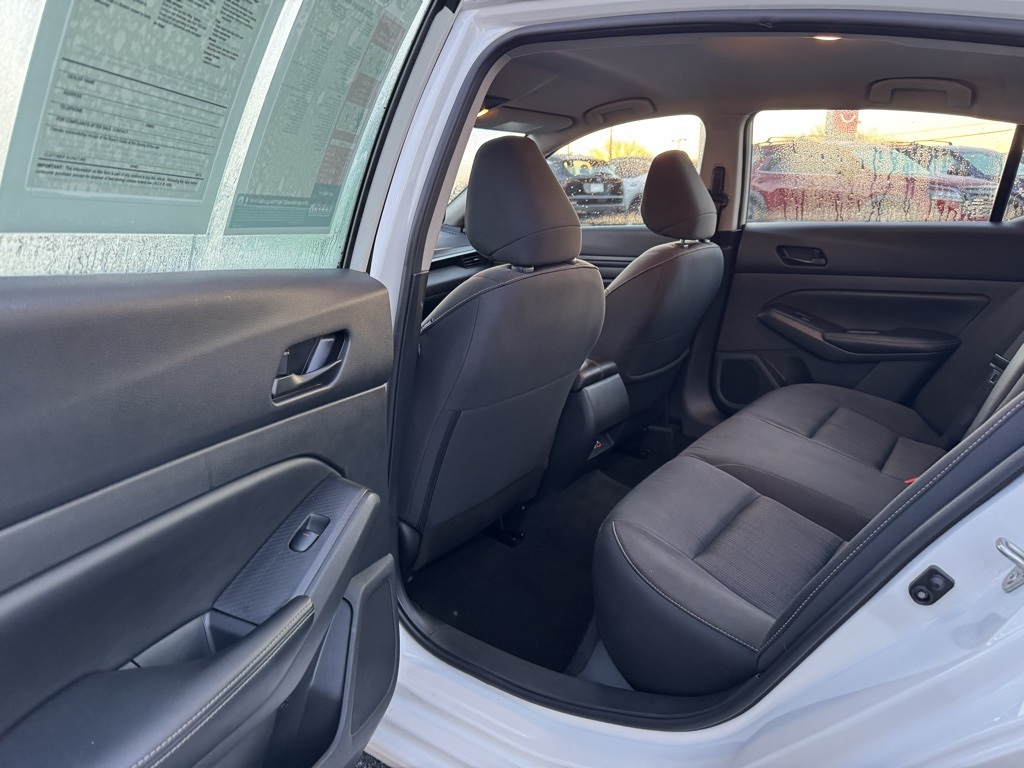 CVT with Xtronic, 17" Machined Alloy Wheels, 4-Wheel Disc Brakes, 6 Speakers, ABS brakes, Air Conditioning, Alloy wheels, AM/FM radio: SiriusXM, Auto High-beam Headlights, Blind Spot Warning, Brake assist, Bumpers: body-color, Cloth Seat Trim, Delay-off headlights, Driver door bin, Driver vanity mirror, Dual front impact airbags, Dual front side impact airbags, Electronic Stability Control, Four wheel independent suspension, Front anti-roll bar, Front Bucket Seats, Front Center Armrest, Front reading lights, Fully automatic headlights, Illuminated entry, Knee airbag, Low tire pressure warning, NissanConnect featuring Apple CarPlay and Android Auto, Occupant sensing airbag, Outside temperature display, Overhead airbag, Overhead console, Panic alarm, Passenger door bin, Passenger vanity mirror, Power door mirrors, Power driver seat, Power steering, Power windows, Radio data system, Radio: AM/FM Audio System, Rear anti-roll bar, Rear Parking Sensors, Rear reading lights, Rear seat center armrest, Rear side impact airbag, Rear window defroster, Remote keyless entry, Security system, Speed control, Speed-sensing steering, Speed-Sensitive Wipers, Split folding rear seat, Steering wheel mounted audio controls, Tachometer, Telescoping steering wheel, Tilt steering wheel, Traction control, Trip computer, and Variably intermittent wipers.